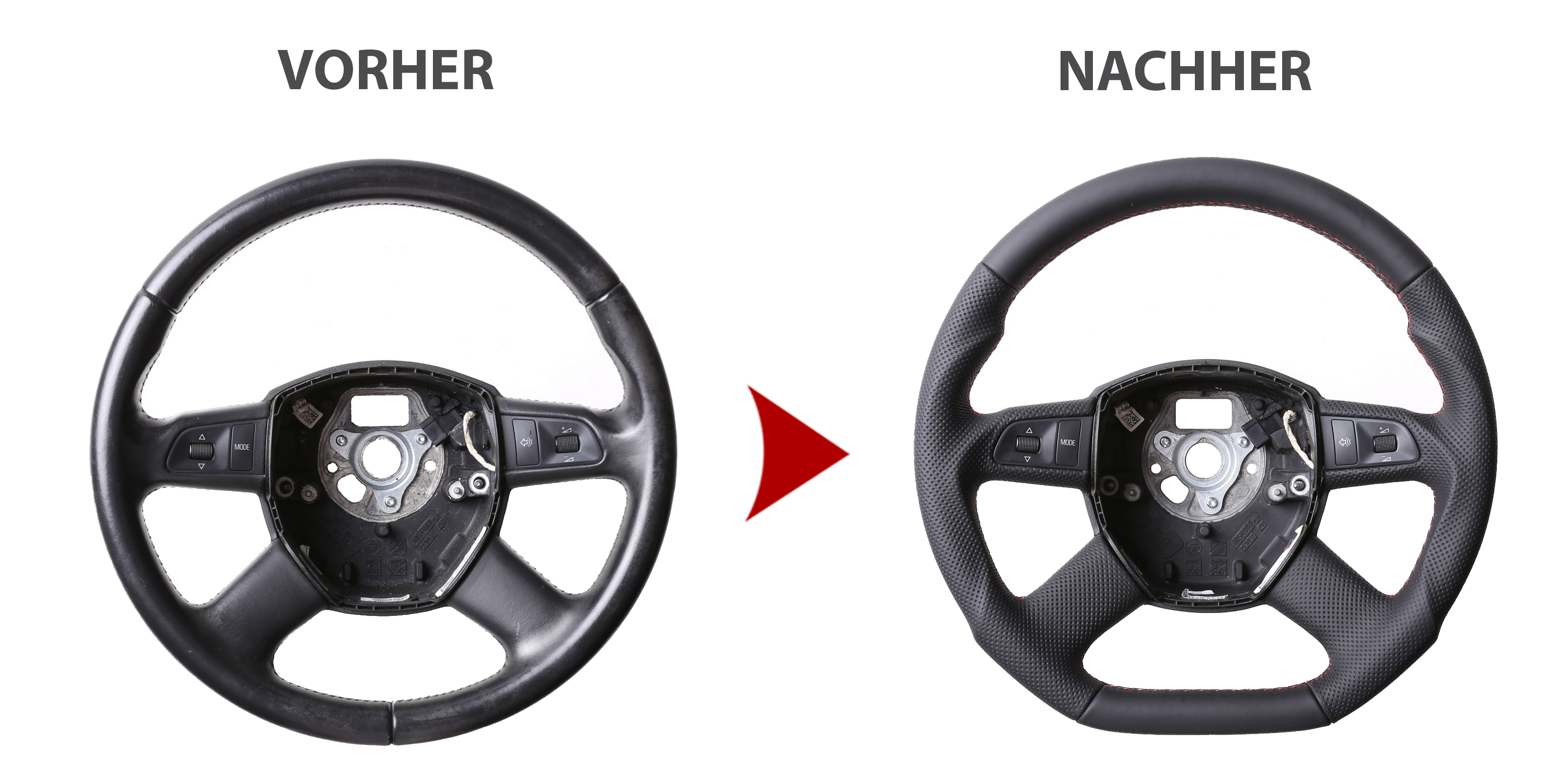 Der Austausch erfolgt ausschließlich gegen ein baugleiches Lenkradmodell. Alle Anbauteile wie Airbag, Multifunktionstasten, Blenden, Schaltwippen oder gar ein Spurhalteassistent übernehmen Sie problemlos von Ihrem Lenkrad. Diese sind nicht im Lieferumfang enthalten.