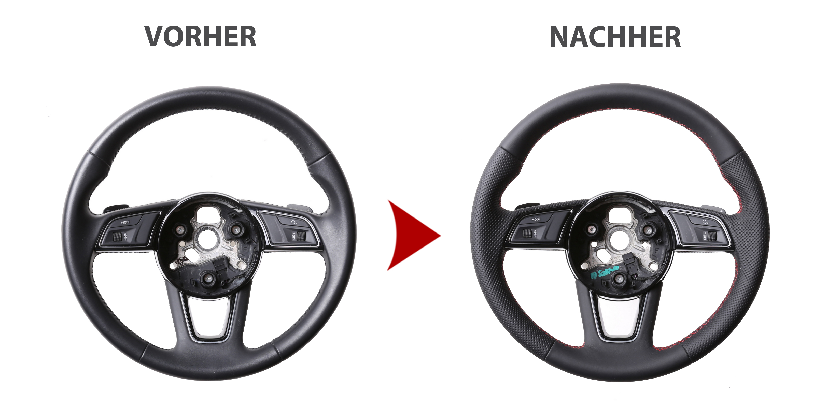 Audi Lenkrad A4 A1 S1 A3 A6 S6 A7 A8 Q3 Kombibezug Naht rot