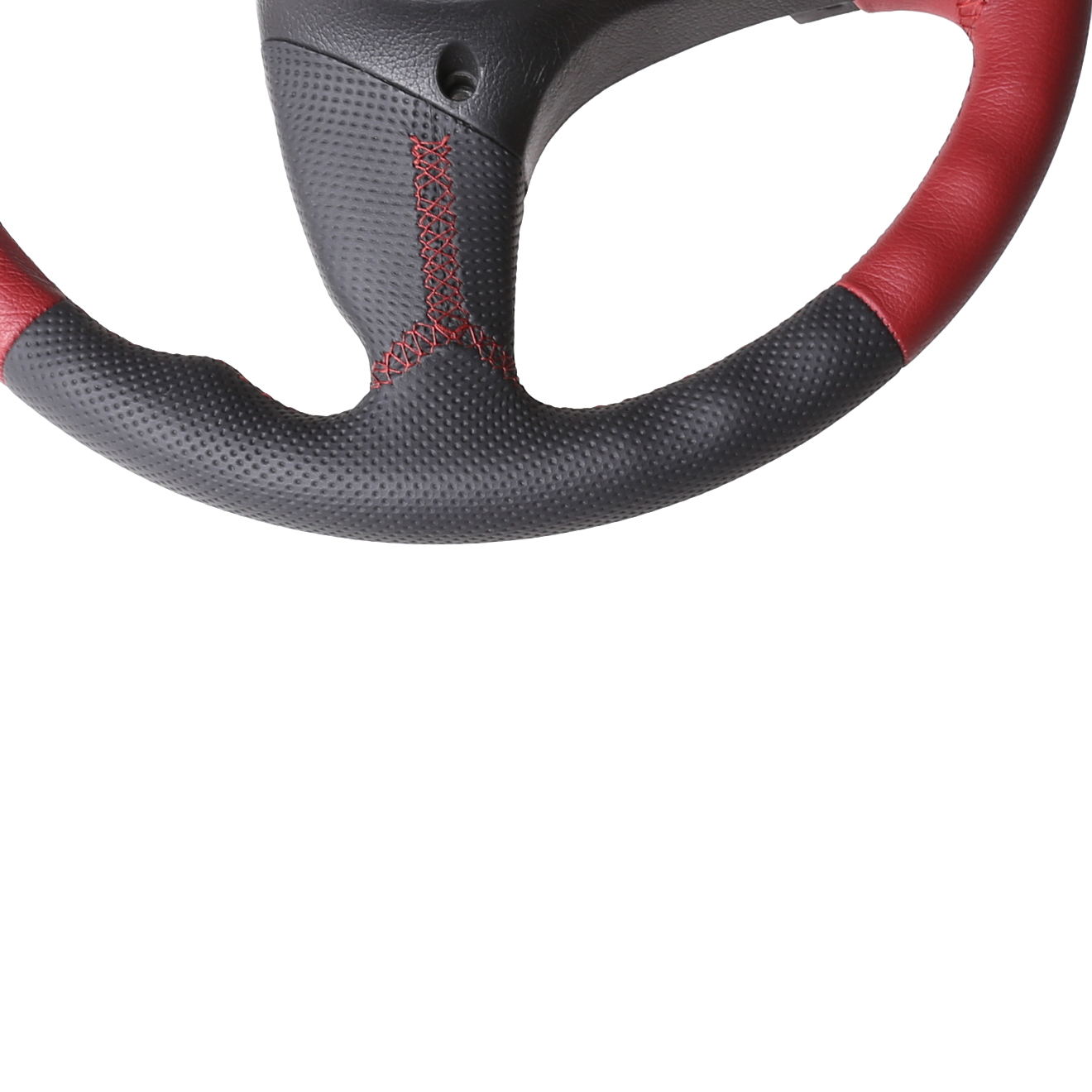 Originalfarbe schwarz, Bicolor rot/schwarz aus genarbt und perforiertem Leder, Naht rot