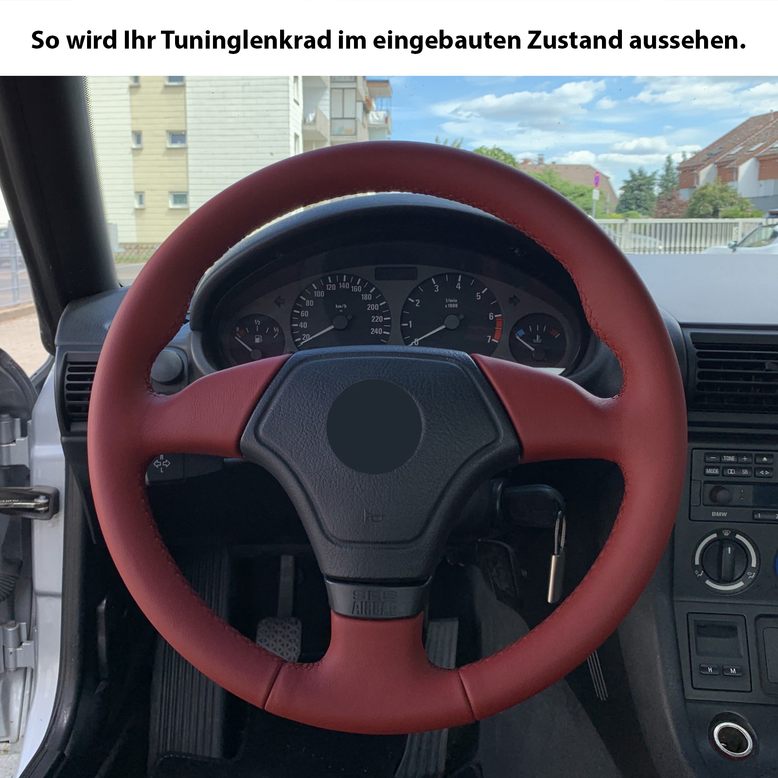 Produktinformationen "BMW Lenkrad E31 E36 E39 E46 Z3 Sport rot Daumenauflagen nur Nappa Naht rot"