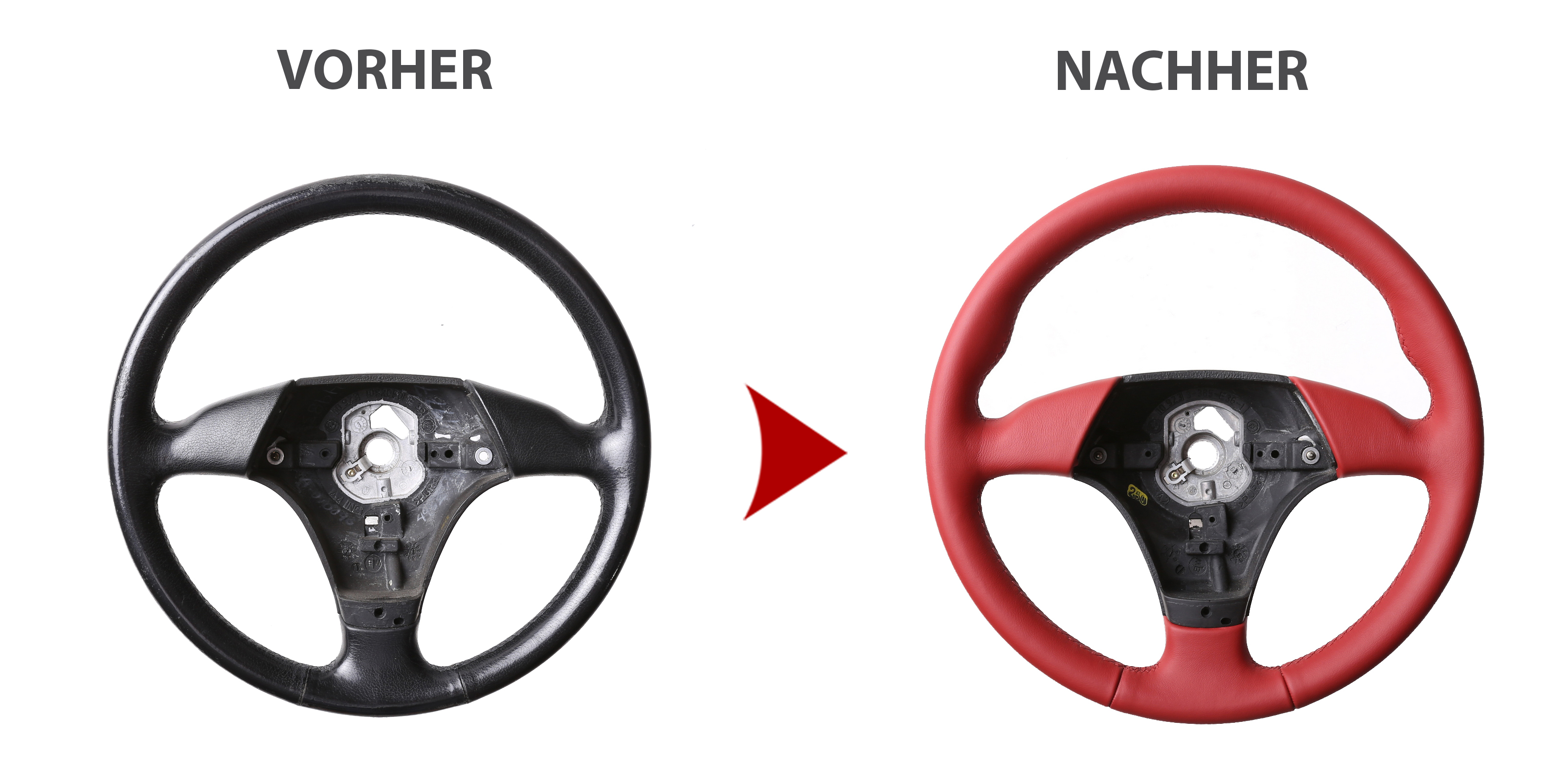 Eigenschaften "BMW Lenkrad E31 E36 E39 E46 Z3 Sport rot Daumenauflagen nur Nappa Naht rot"