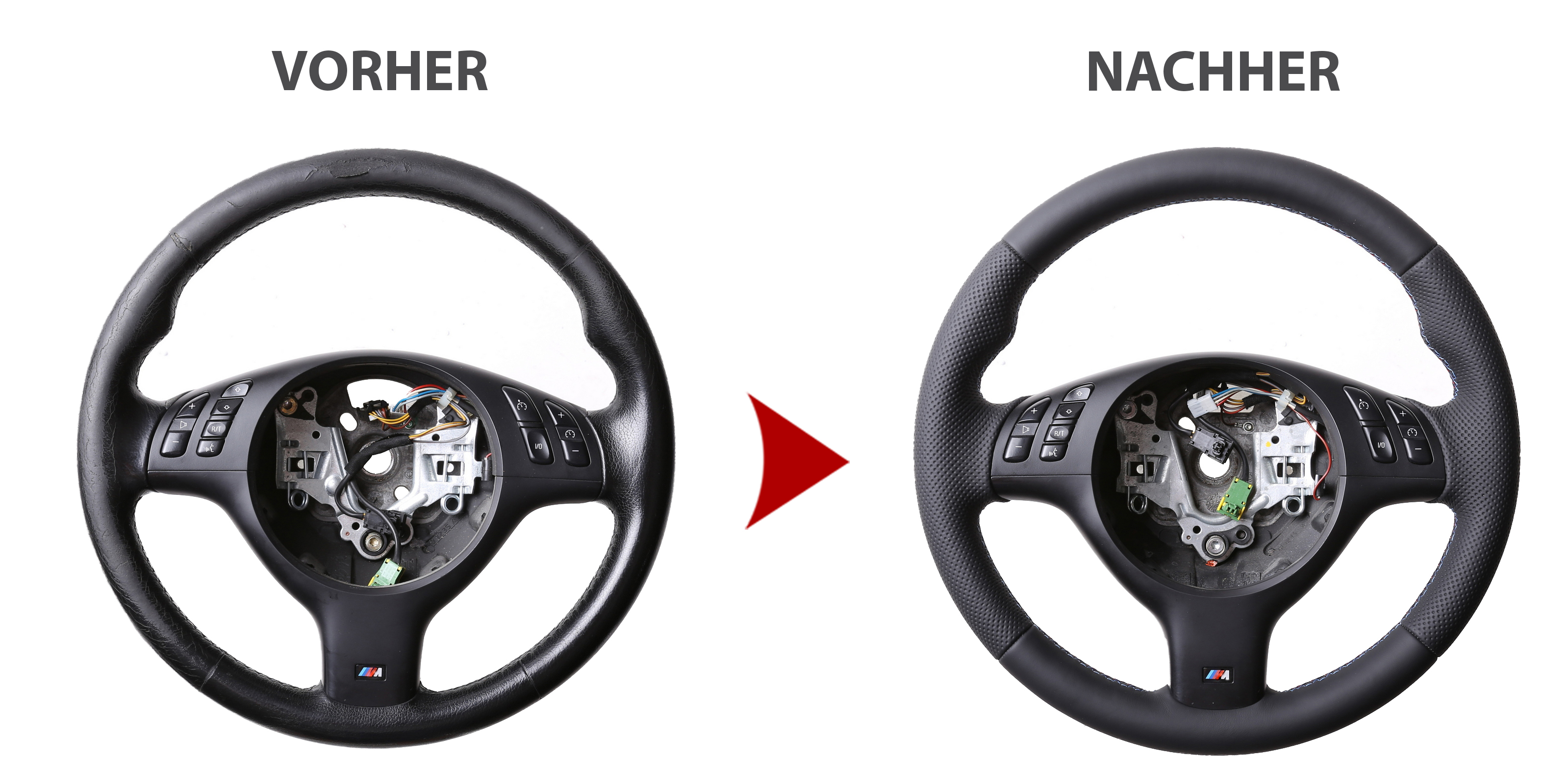 Sollte Ihr Lenkrad deutliche Defekte wie Risse oder Löcher am Kranz aufweisen, oder auch die alte Lederschicht Ihres Lenkrads entfernt und nicht mehr erhalten werden können, muss nicht nur die Lederschicht erneuert werden, sondern auch die darunterliegende Polsterung. In diesem Fall müssen Sie mit einem Aufpreis von 30€ rechnen.
