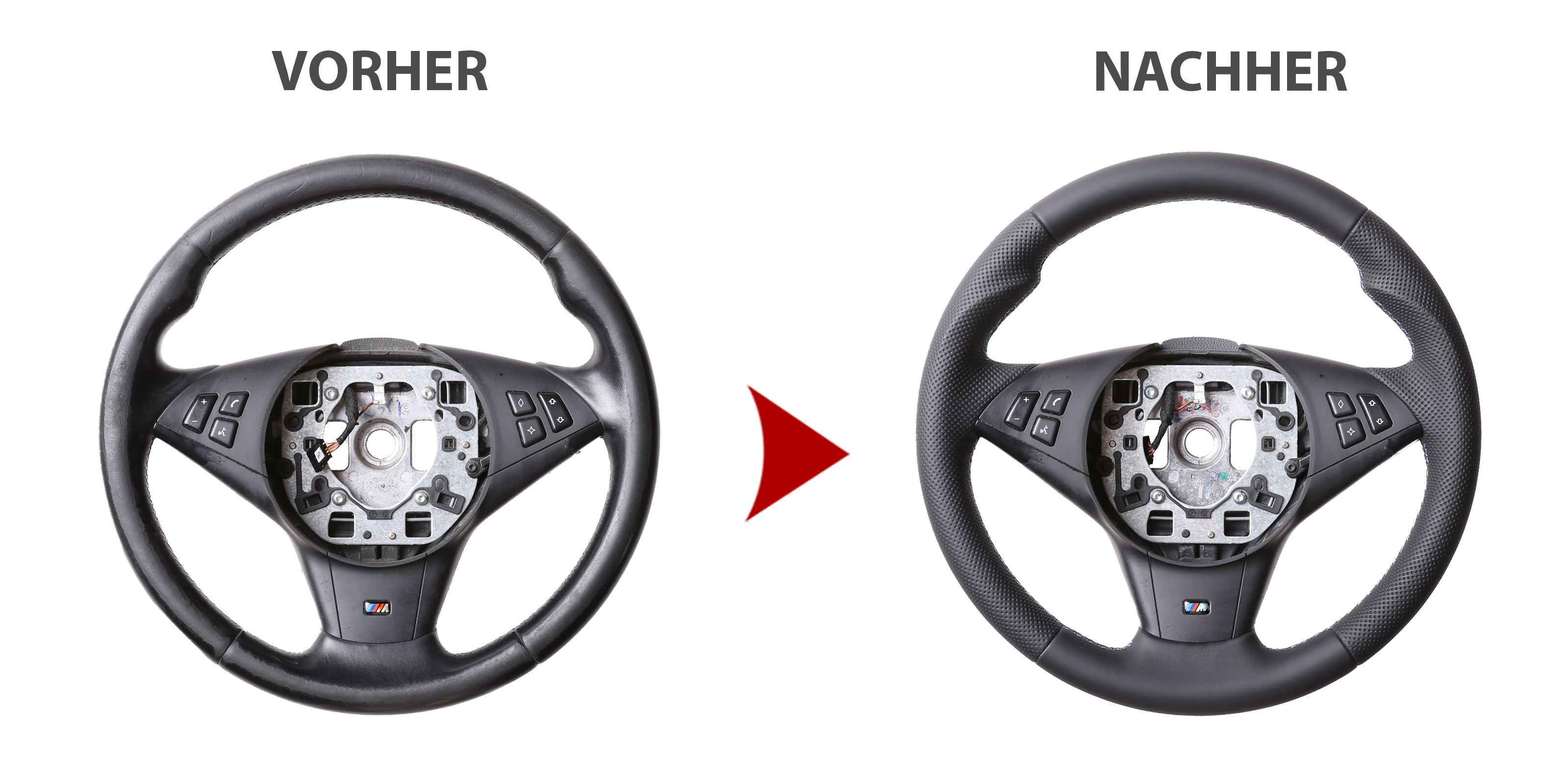 Des Weiteren bieten wir auch den Neubezug Ihres Lenkrades nach Ihren individuellen Vorstellungen bei uns vor Ort an. Sollte es Ihr Lenkradmodell ausnahmsweise nicht in unserem Sortiment geben, dann können wir Ihnen Ihr Lenkrad ausbauen, innerhalb von 4-5 Stunden den Wunschbezug anfertigen und anschließend können Sie wieder nach fachgerechtem Einbau durch uns ohne lange Versandwartezeiten und teure Werkstattbesuche mit Ihrem neu bezogenen Lederlenkrad nach Hause fahren!