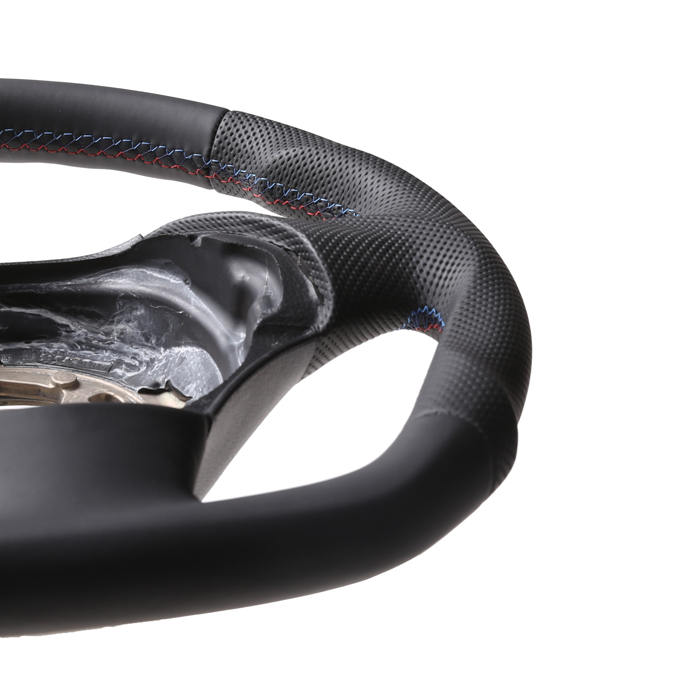 Originalfarbe schwarz, ein Kombibezug aus BMW Nappa und perforiertem Leder,12 Uhr Markierung blau, BMW M-Naht