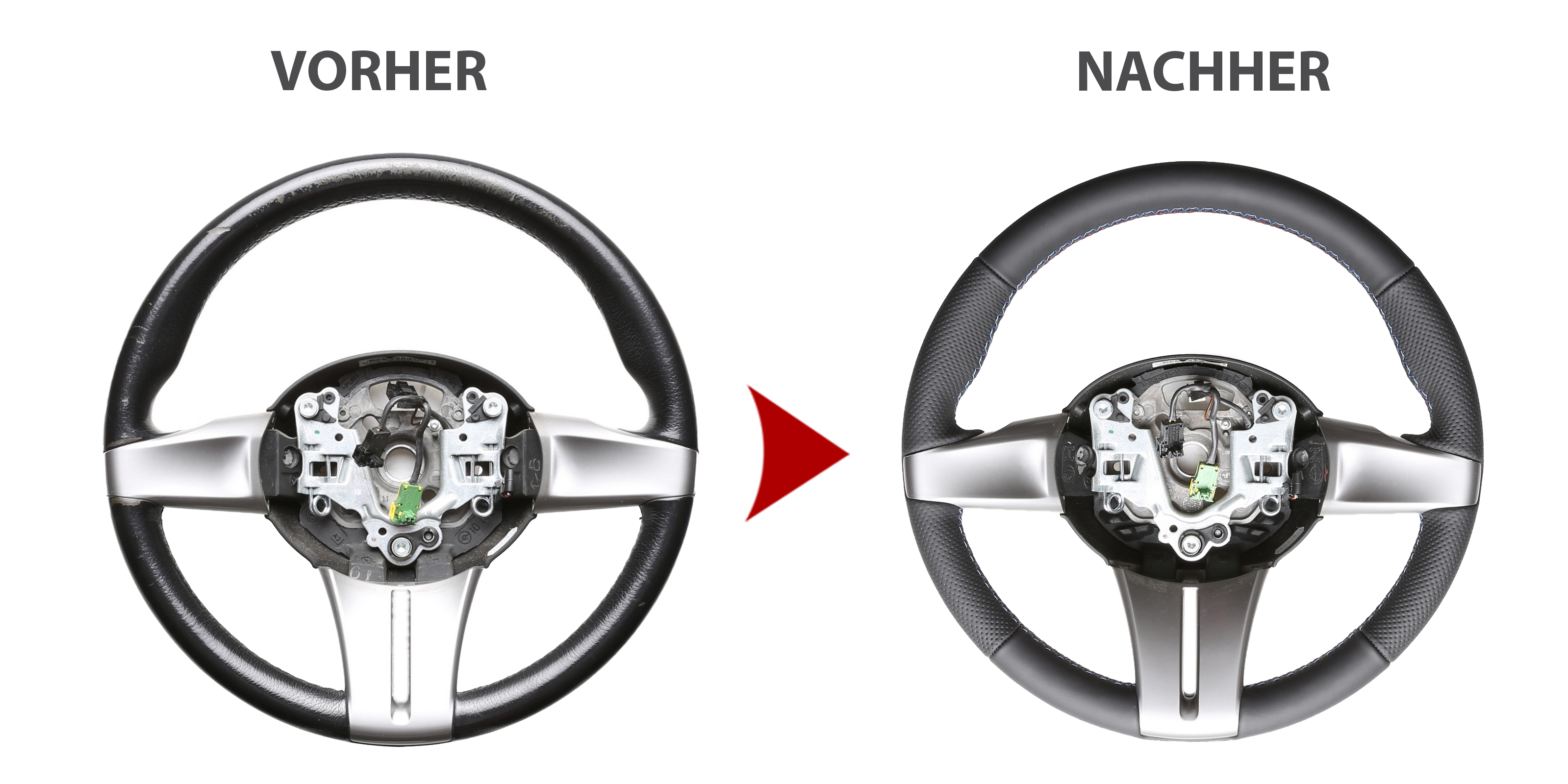Der Austausch erfolgt ausschließlich gegen ein baugleiches Lenkradmodell. Alle Anbauteile wie Airbag, Multifunktionstasten, Blenden, Schaltwippen oder gar ein Spurhalteassistent übernehmen Sie problemlos von Ihrem Lenkrad. Diese sind nicht im Lieferumfang enthalten.