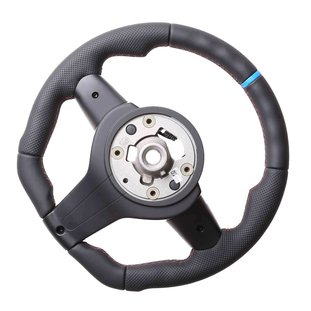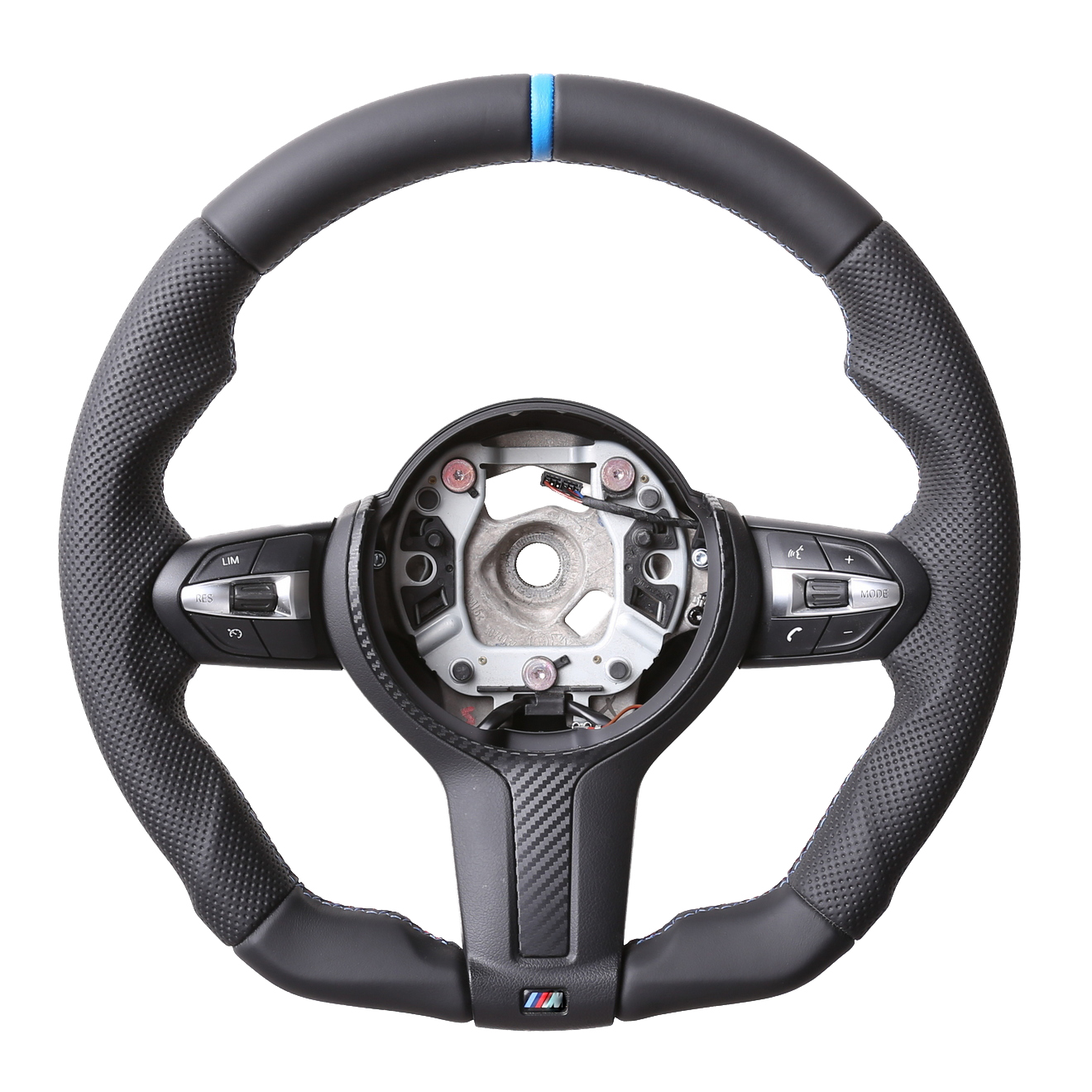 Produktinformationen "BMW Lenkrad F01 F02 F07 F10 F11 F12 F13 Abgeflacht Kombibezug 12Uhr Markierung hellblau M-Naht"