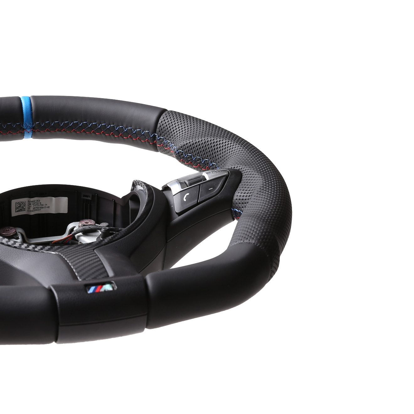 BMW Lenkrad F01 F02 F07 F10 F11 F12 F13 Abgeflacht Kombibezug 12Uhr Markierung hellblau M-Naht