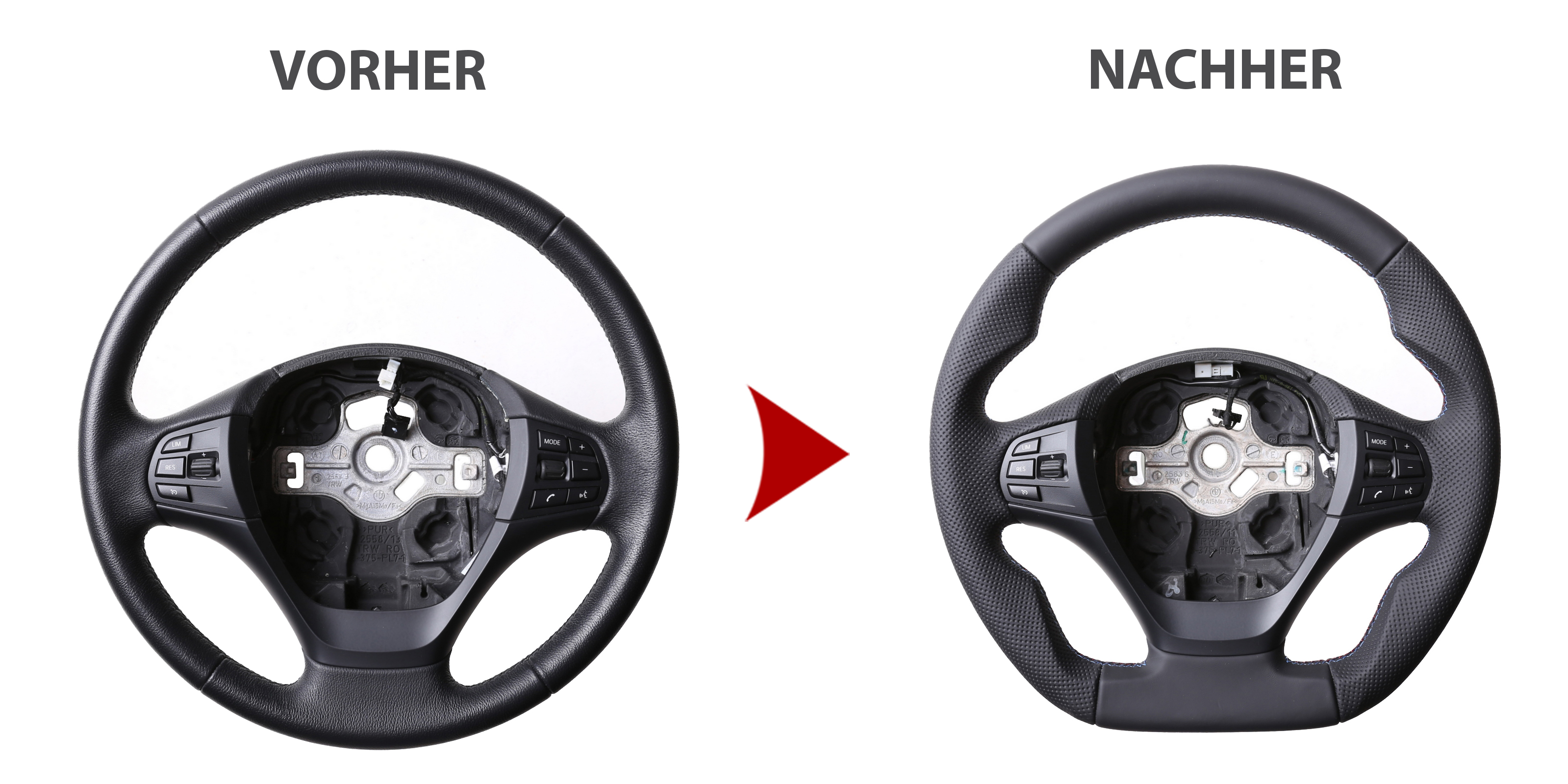 Der Austausch erfolgt ausschließlich gegen ein baugleiches Lenkradmodell. Alle Anbauteile wie Airbag, Multifunktionstasten, Blenden, Schaltwippen oder gar ein Spurhalteassistent übernehmen Sie problemlos von Ihrem Lenkrad. Diese sind nicht im Lieferumfang enthalten.