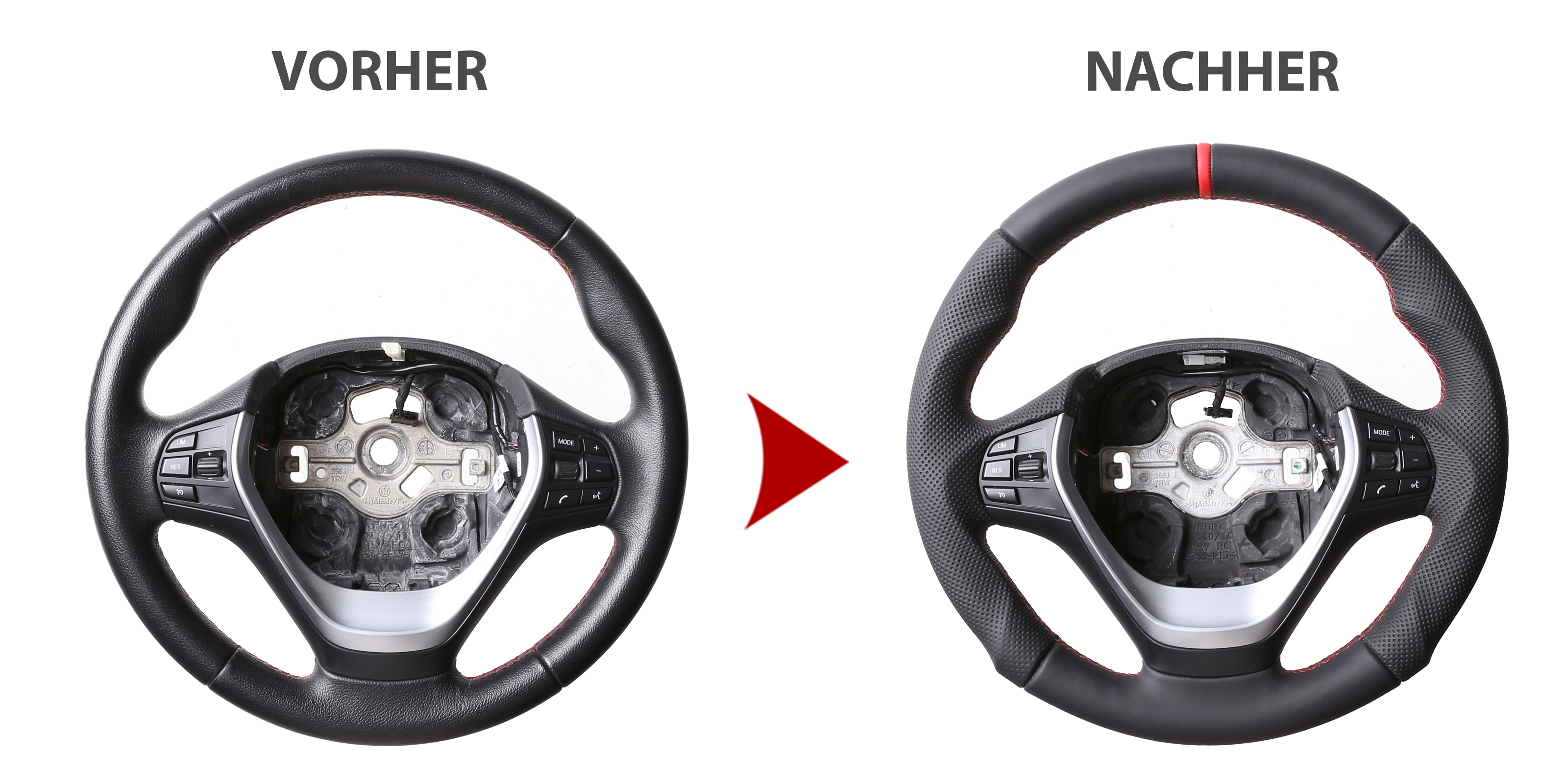 Eigenschaften "BMW Lenkrad F15 F20 F21 F22 F30 F31 F32 F33 F34 Sport Tuning Kombibezug 12 Uhr Markierung rot"