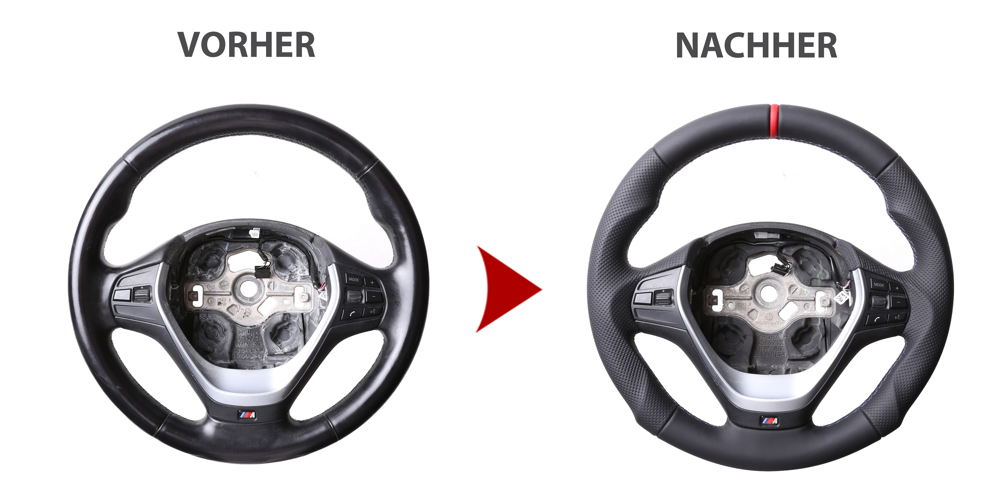 BMW Lenkrad F15 F20 F21 F22 F30 F31 F32 F33 F34 Tuning Kombibezug 12 Uhr Markierung rot M-Naht