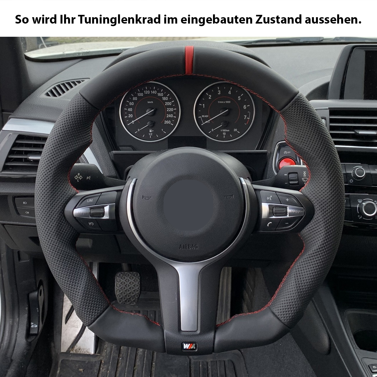Produktinformationen "BMW Lenkrad F15 F20 F21 F22 F30 F34 GT F32 F33 F36 Abgeflacht Kombibezug 12Uhr Markierung rot"