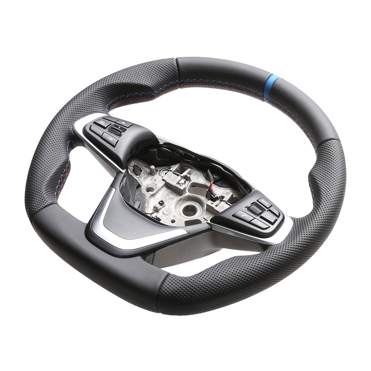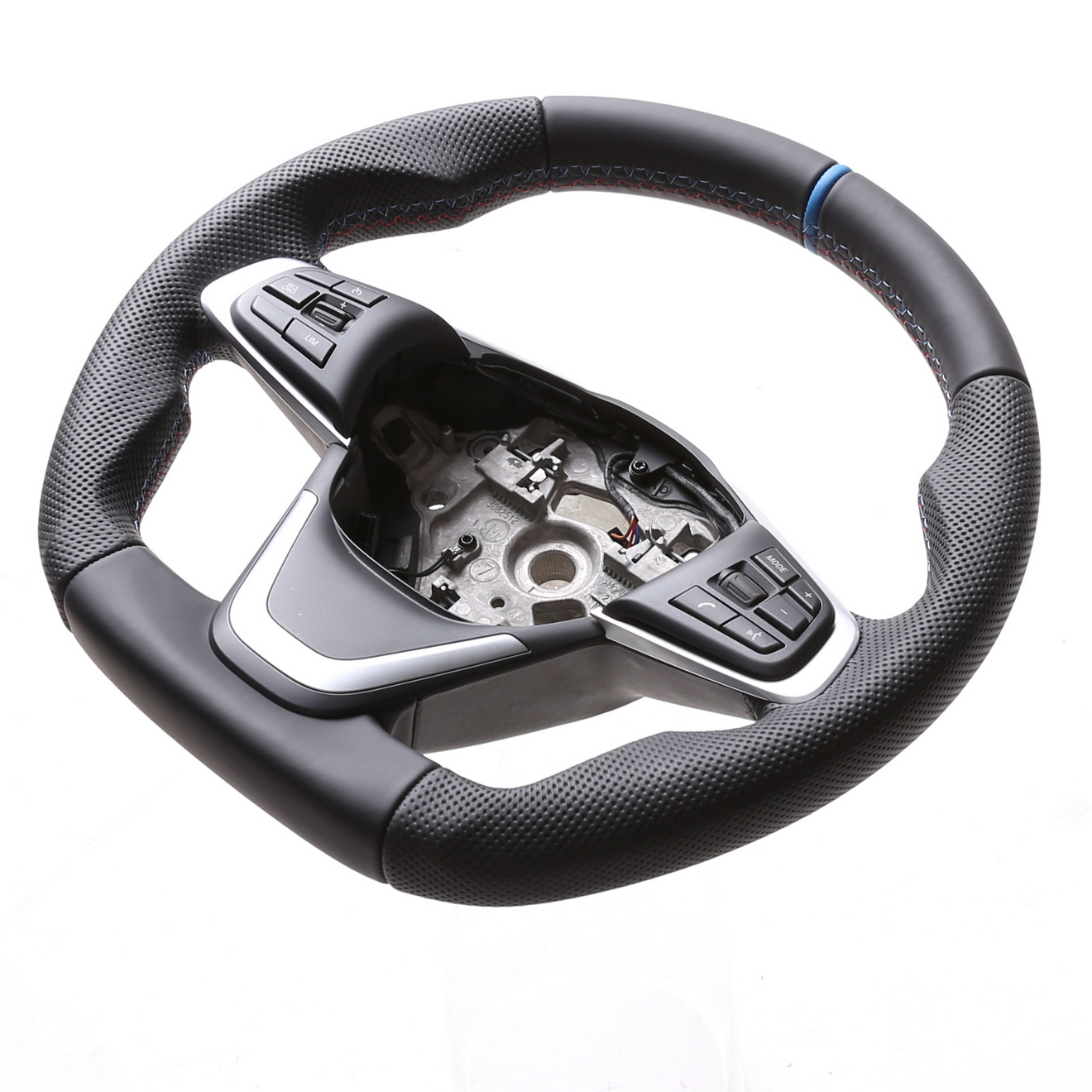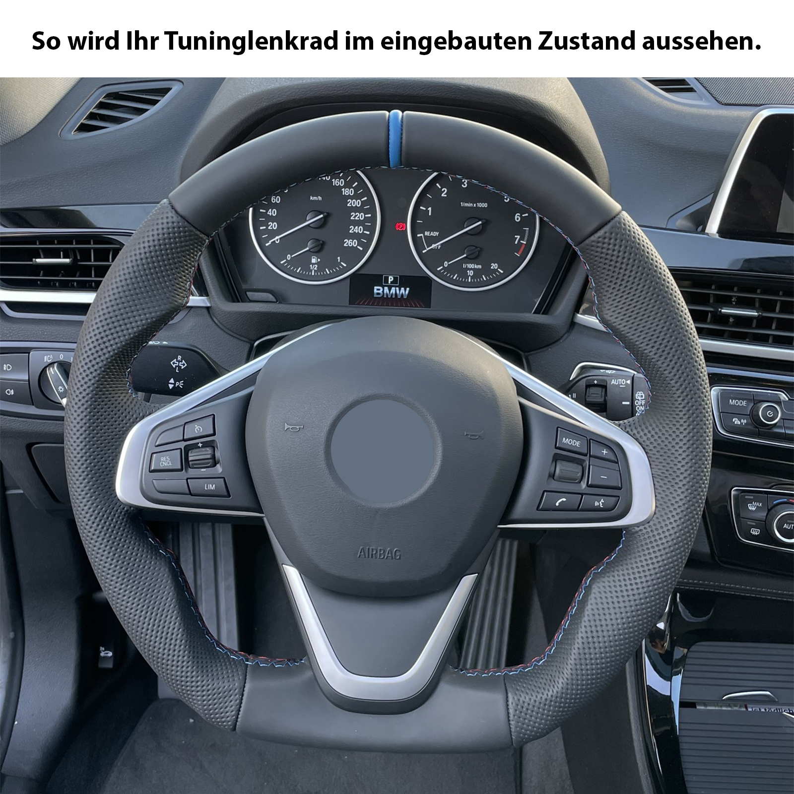 BMW Lenkrad X1 F48 X2 F39 Abgeflacht Kombibezug 12 Uhr Markierung hellblau M-Naht