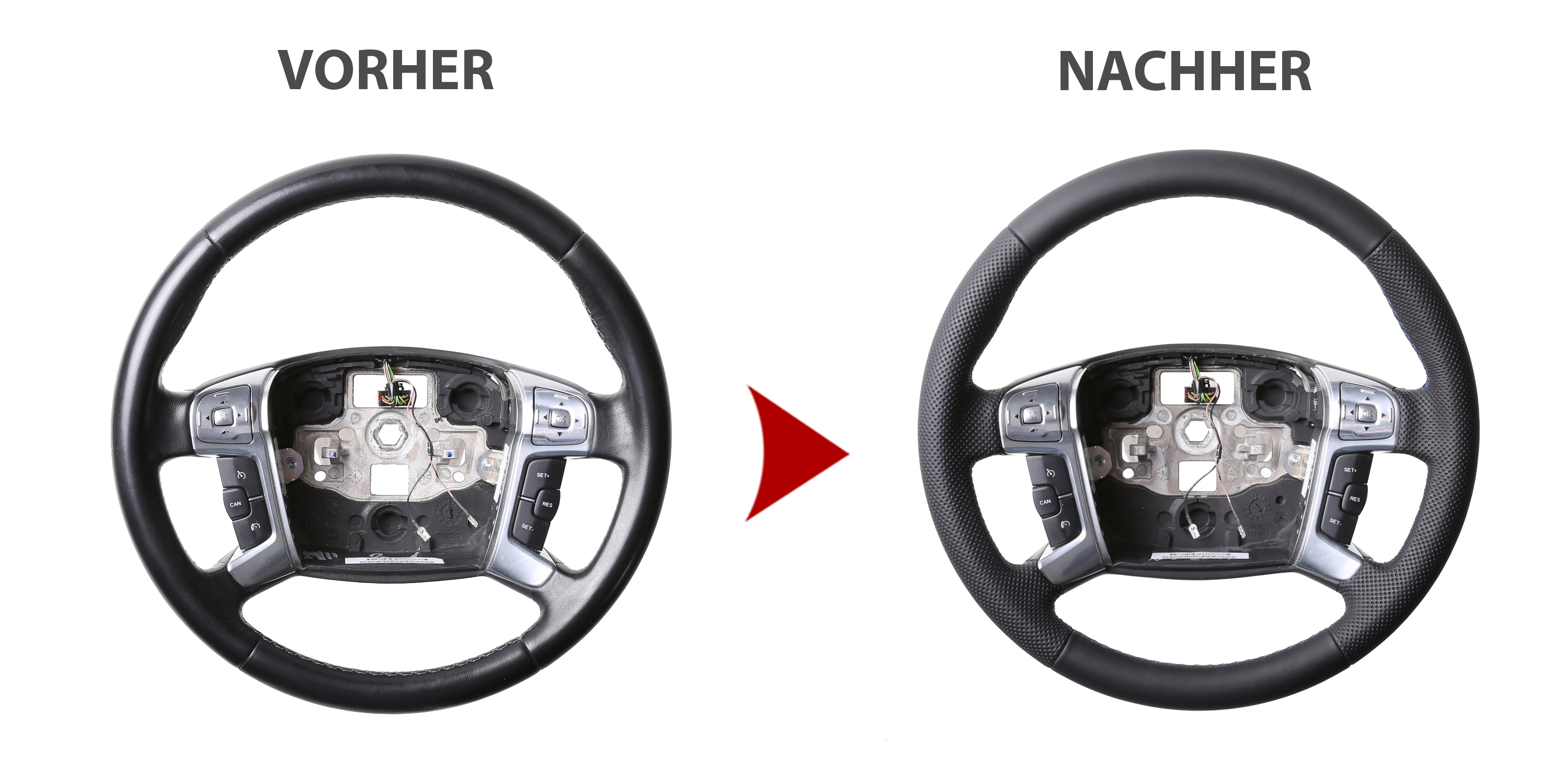Der Austausch erfolgt ausschließlich gegen ein baugleiches Lenkradmodell. Alle Anbauteile wie Airbag, Multifunktionstasten, Blenden, Schaltwippen oder gar ein Spurhalteassistent übernehmen Sie problemlos von Ihrem Lenkrad. Diese sind nicht im Lieferumfang enthalten.