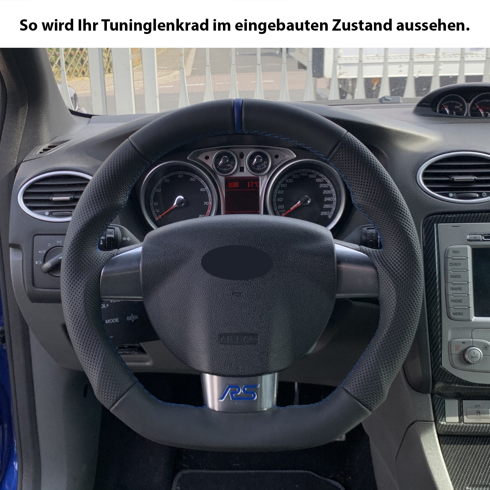 Ford Lenkrad Focus RS Kombibezug Abgeflacht 12 Uhr Markierung blau Naht blau
