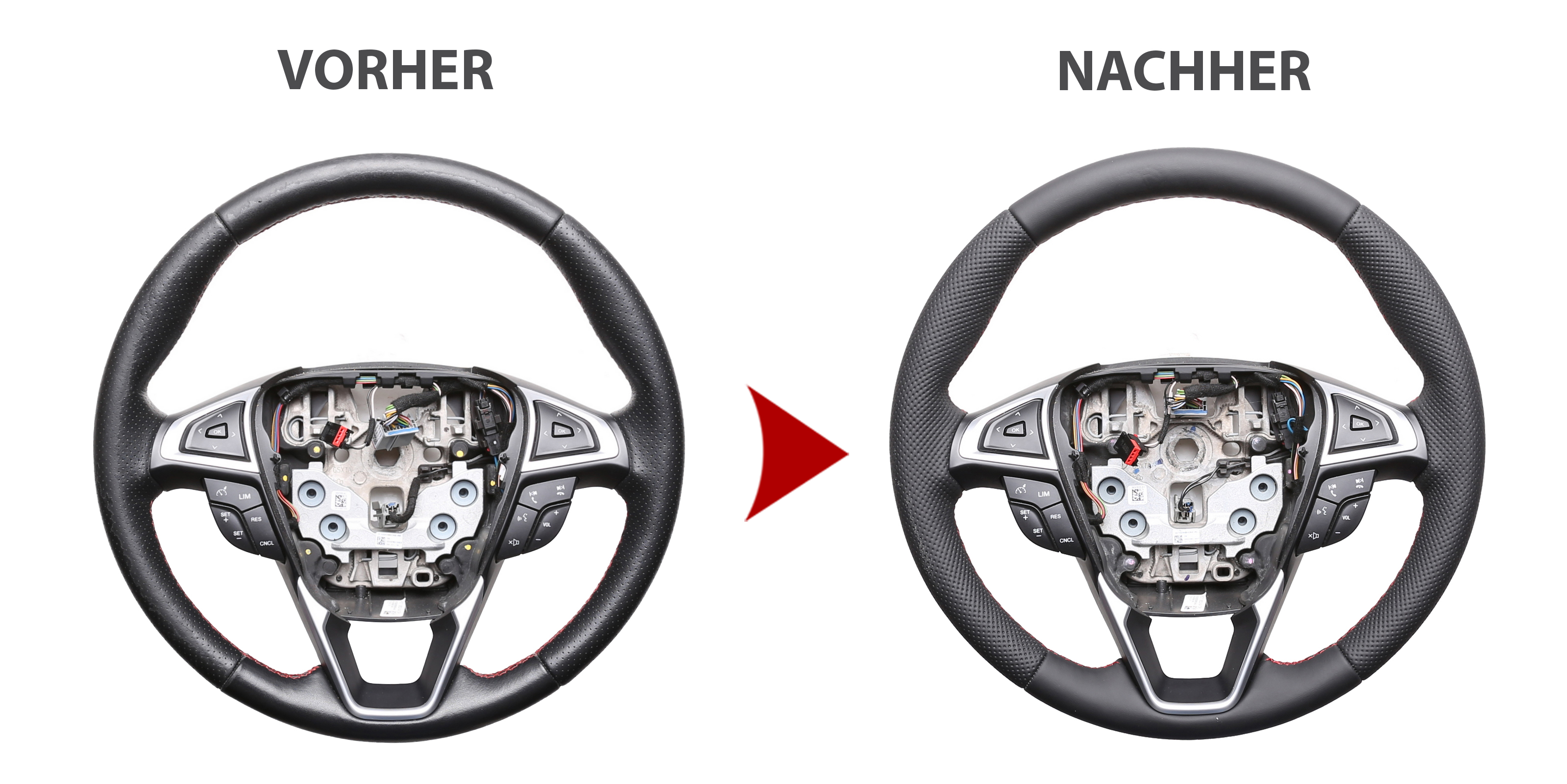 Produktinformationen "Ford Lenkrad Mondeo Fusion Edge Fiesta Galaxy S-Max Kombibezug Naht rot"