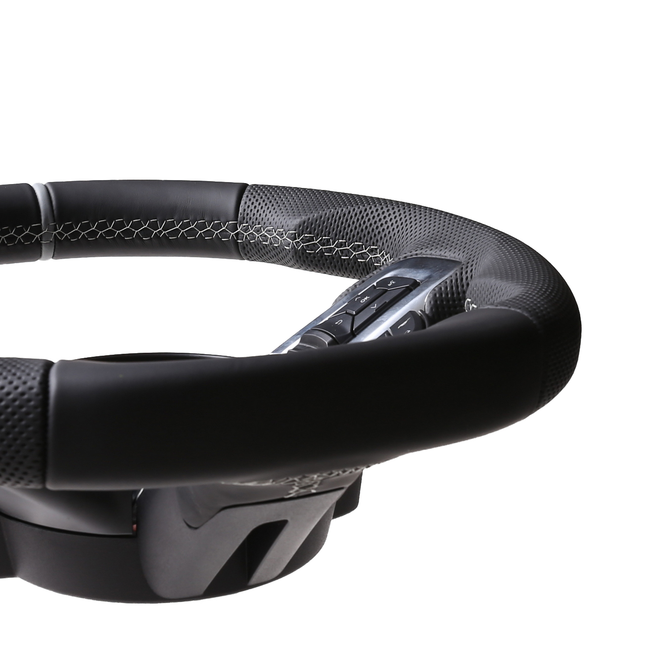 Abgeflachtes Tuninglenkrad mit ergonomischen Griffen für maximale Kontrolle. Griffumfang dicker als beim Original Lenkrad.