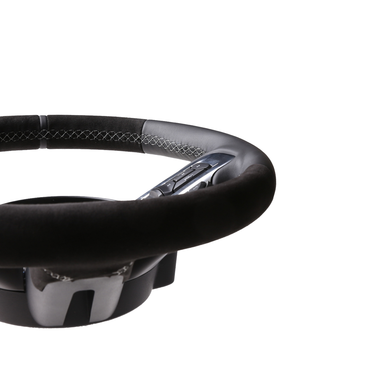 Originalfarbe schwarz, ein Kombibezug aus Alcantara und Nappa Leder, 12 Uhr Markierung schwarz, Naht silber