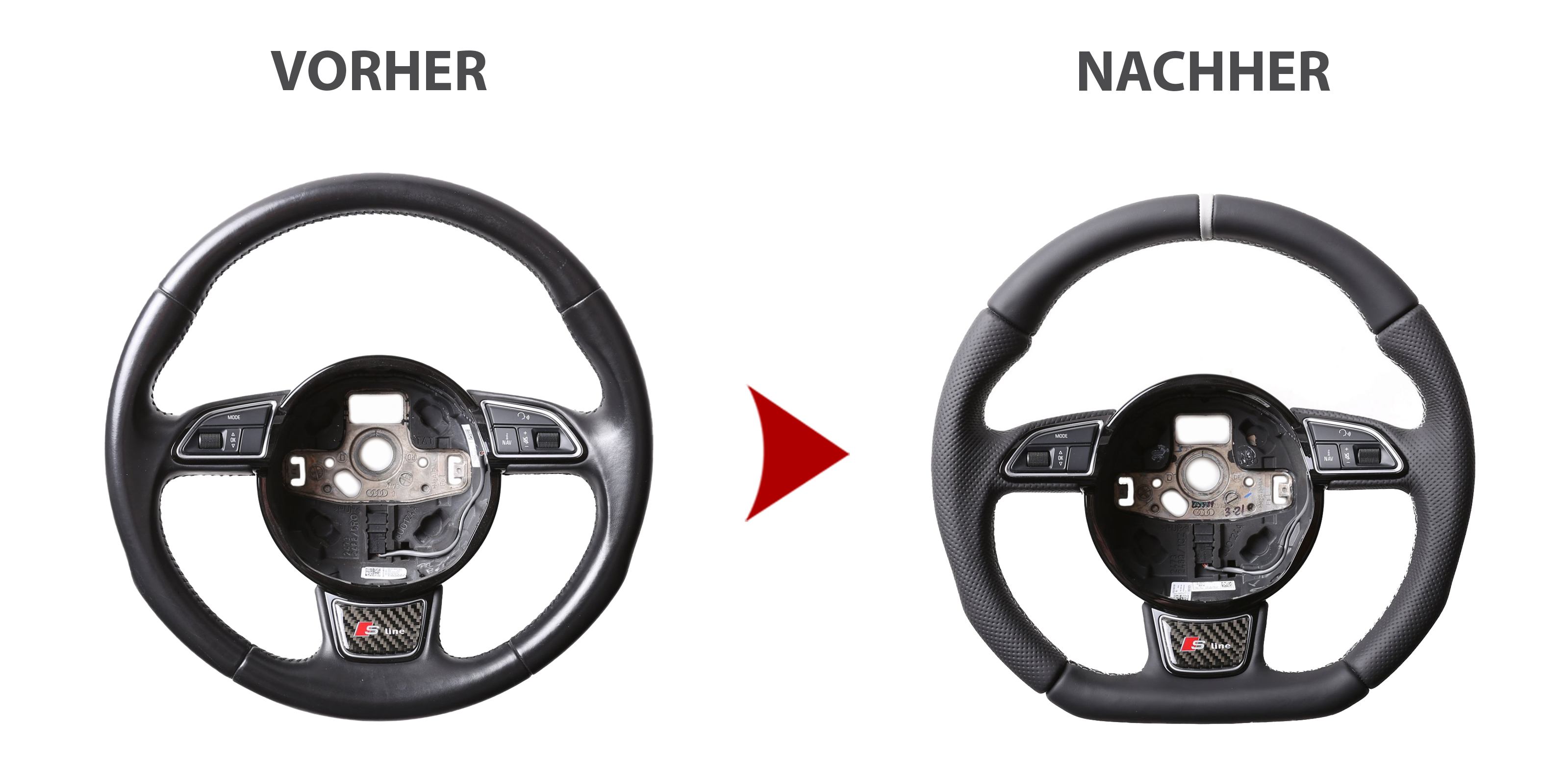 Der Austausch erfolgt ausschließlich gegen ein baugleiches Lenkradmodell. Alle Anbauteile wie Airbag, Multifunktionstasten, Blenden, Schaltwippen oder gar ein Spurhalteassistent übernehmen Sie problemlos von Ihrem Lenkrad. Diese sind nicht im Lieferumfang enthalten.