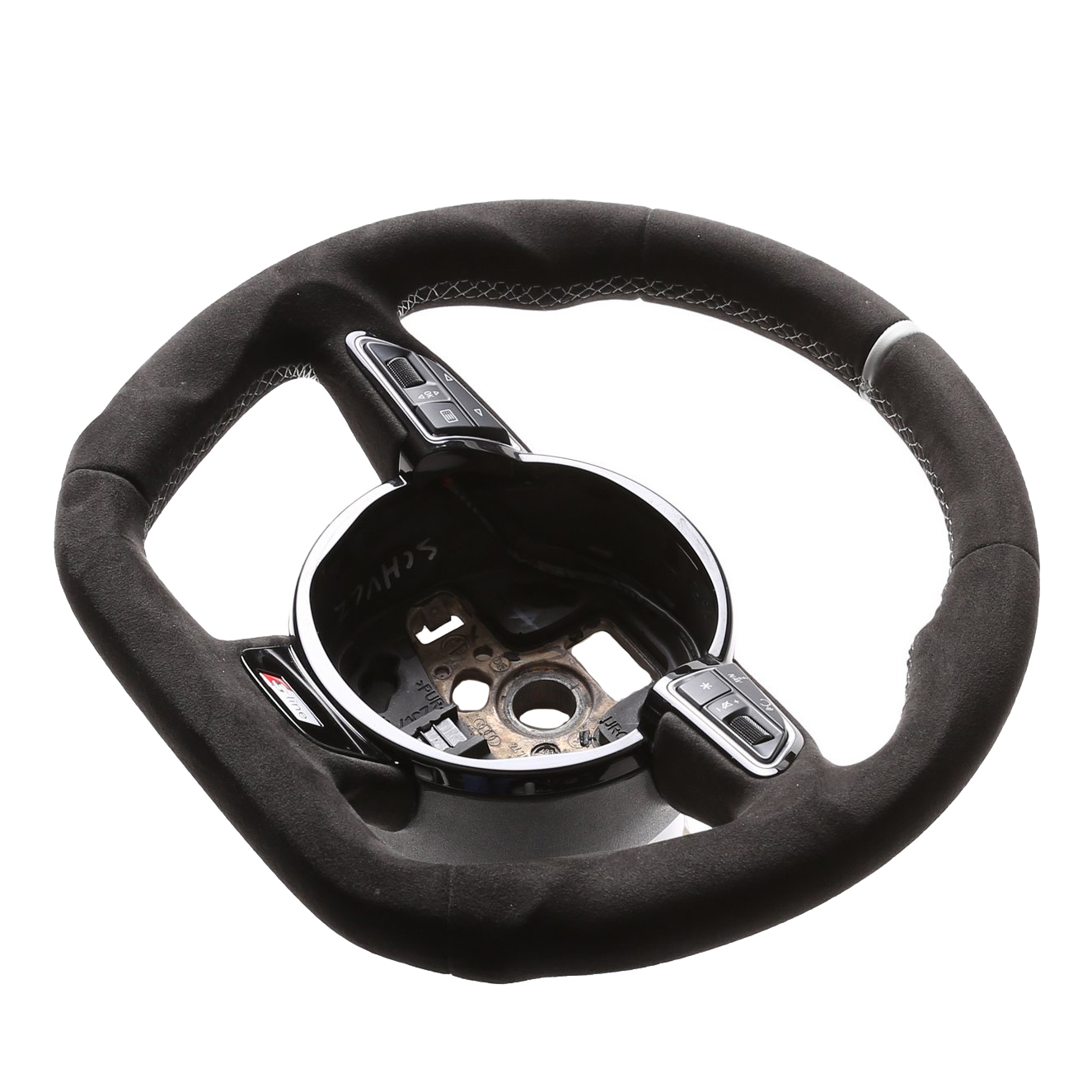 Originalfarbe schwarz, ein Bezug aus Alcantara Leder, 12 Uhr Markierung silber, Naht silber