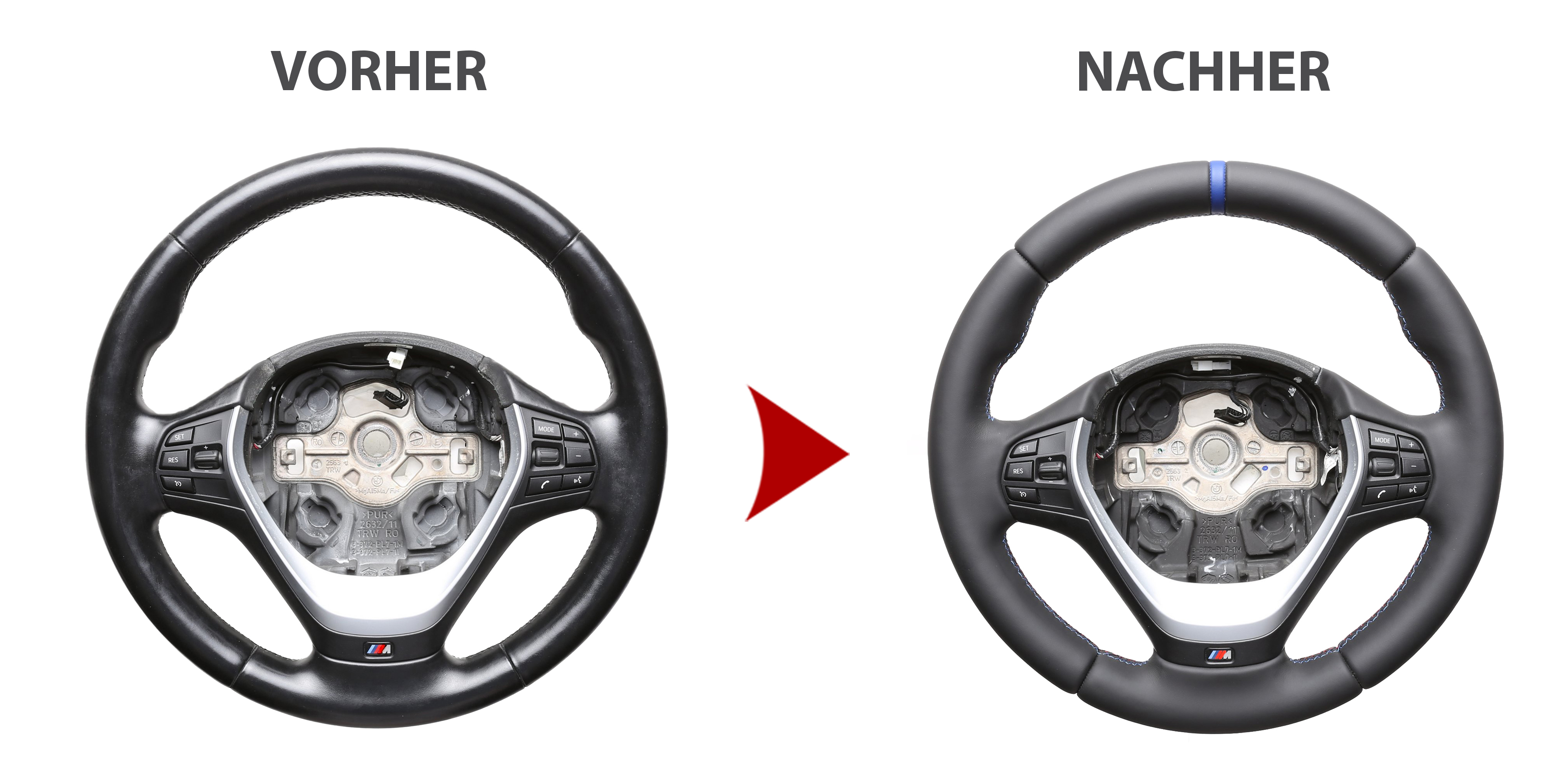 BMW Lenkrad F15 F20 F21 F22 F25 F30 F31 F32 F33 F34 M-Sport nur Nappa 12 Uhr Markierung blau M-Naht