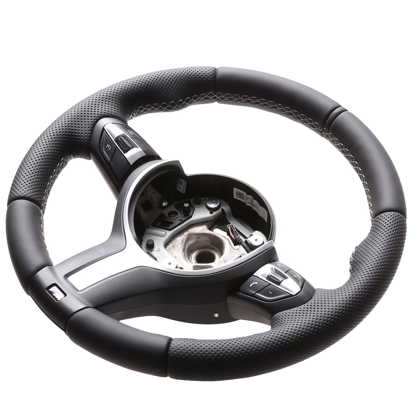 Originalfarbe schwarz, ein Kombibezug aus BMW Nappa und perforiertem Leder, 12 Uhr Markierung schwarz, Naht silber