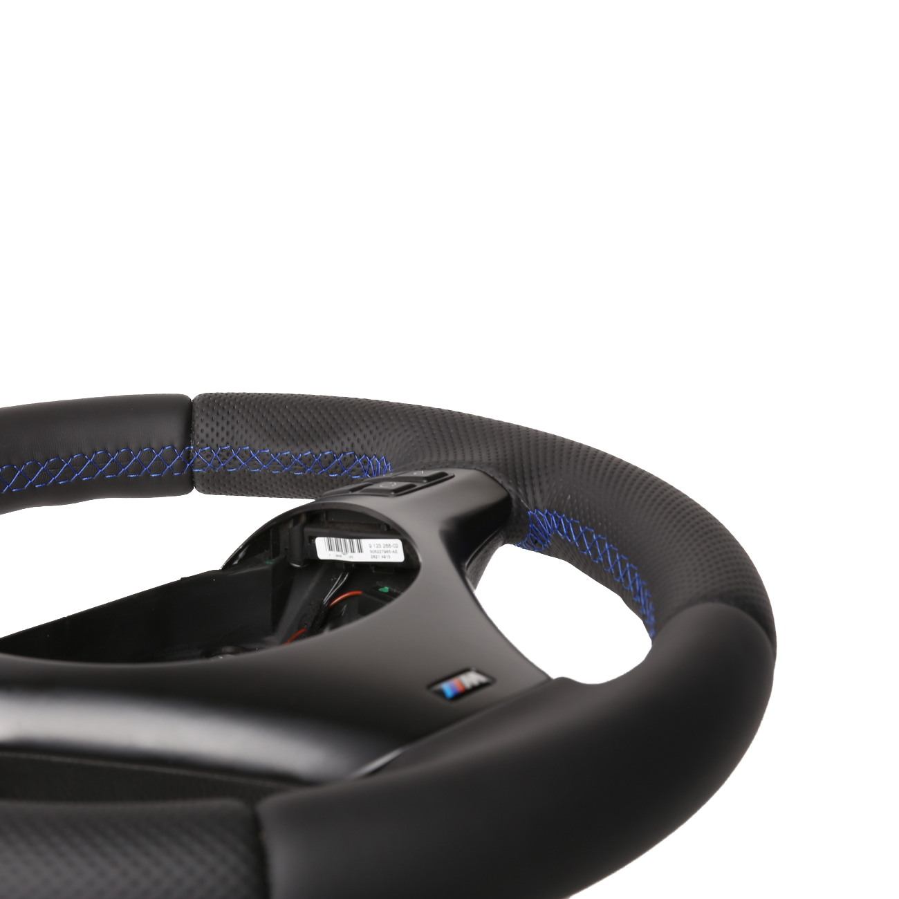 Originalfarbe schwarz, ein Kombibezug aus BMW Nappa und perforiertem Leder, Naht blau.