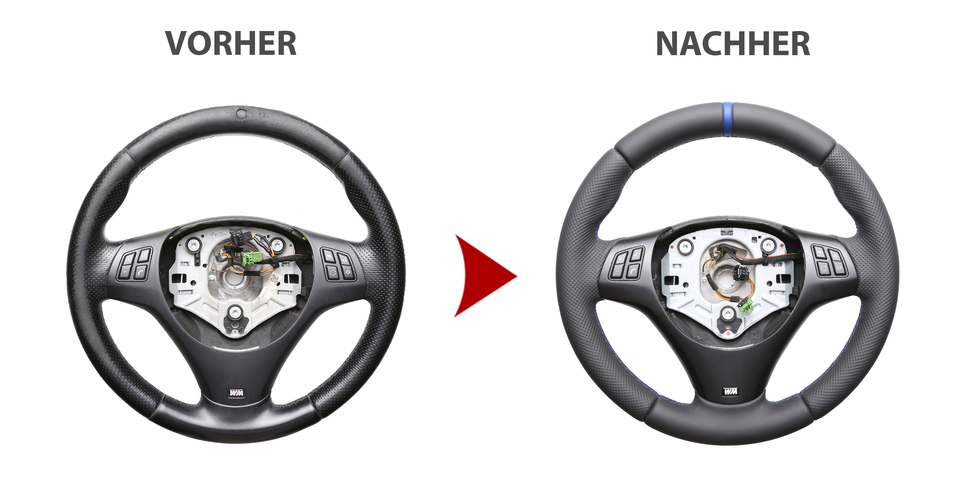 Des Weiteren bieten wir auch den Neubezug Ihres Lenkrades nach Ihren individuellen Vorstellungen bei uns vor Ort an. Sollte es Ihr Lenkradmodell ausnahmsweise nicht in unserem Sortiment geben, dann können wir Ihnen Ihr Lenkrad ausbauen, innerhalb von 4-5 Stunden den Wunschbezug anfertigen und anschließend können Sie wieder nach fachgerechtem Einbau durch uns ohne lange Versandwartezeiten und teure Werkstattbesuche mit Ihrem neu bezogenen Lederlenkrad nach Hause fahren!