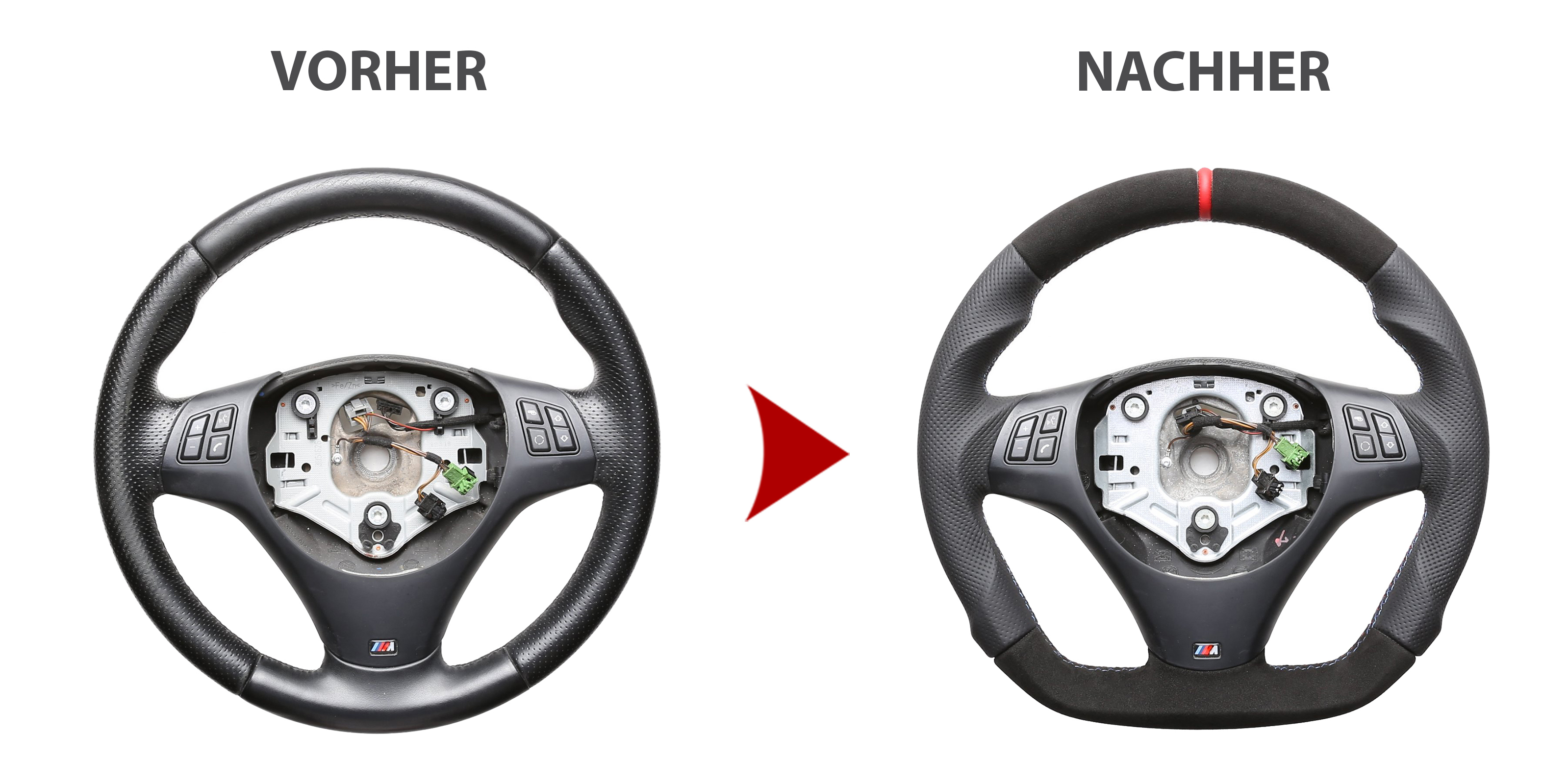 Produktinformationen "BMW Lenkrad E84 X1 E87 E88 E90 E91 M-Sport Abgeflacht Kombibezug Alcantara 12 Uhr Markierung rot"