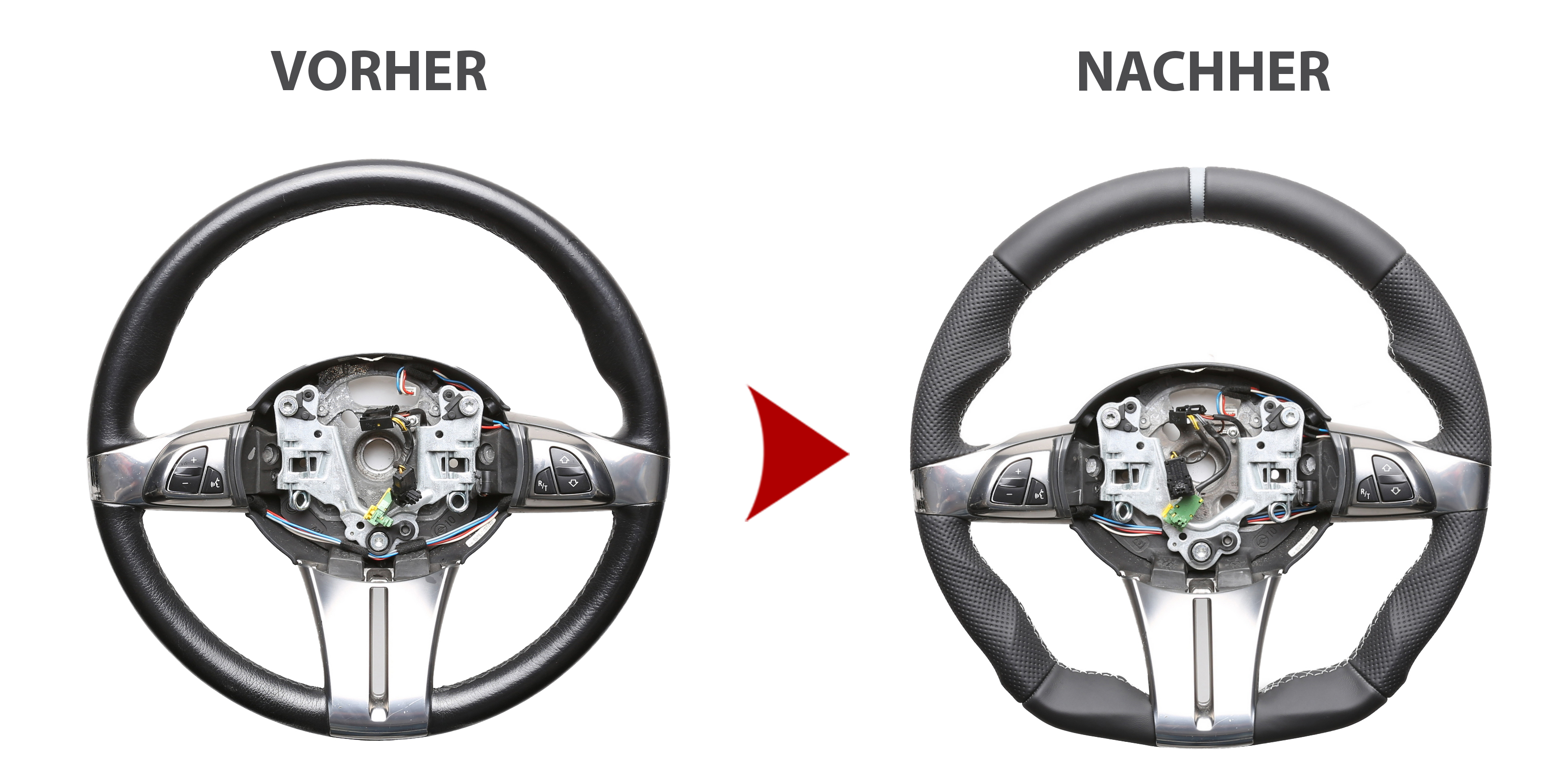 Der Austausch erfolgt ausschließlich gegen ein baugleiches Lenkradmodell. Alle Anbauteile wie Airbag, Multifunktionstasten, Blenden, Schaltwippen oder gar ein Spurhalteassistent übernehmen Sie problemlos von Ihrem Lenkrad. Diese sind nicht im Lieferumfang enthalten.