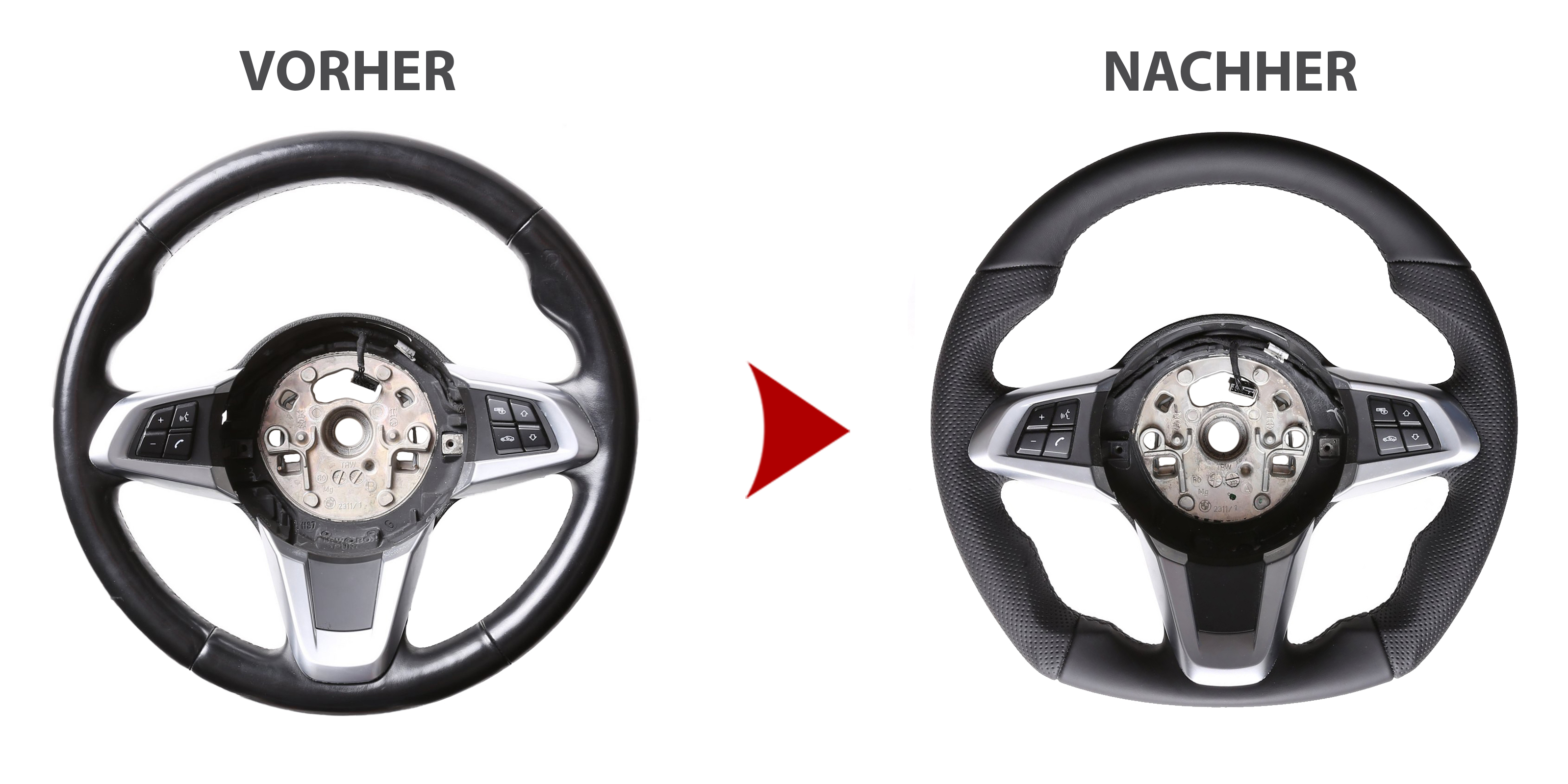Der Austausch erfolgt ausschließlich gegen ein baugleiches Lenkradmodell. Alle Anbauteile wie Airbag, Multifunktionstasten, Blenden, Schaltwippen oder gar ein Spurhalteassistent übernehmen Sie problemlos von Ihrem Lenkrad. Diese sind nicht im Lieferumfang enthalten.