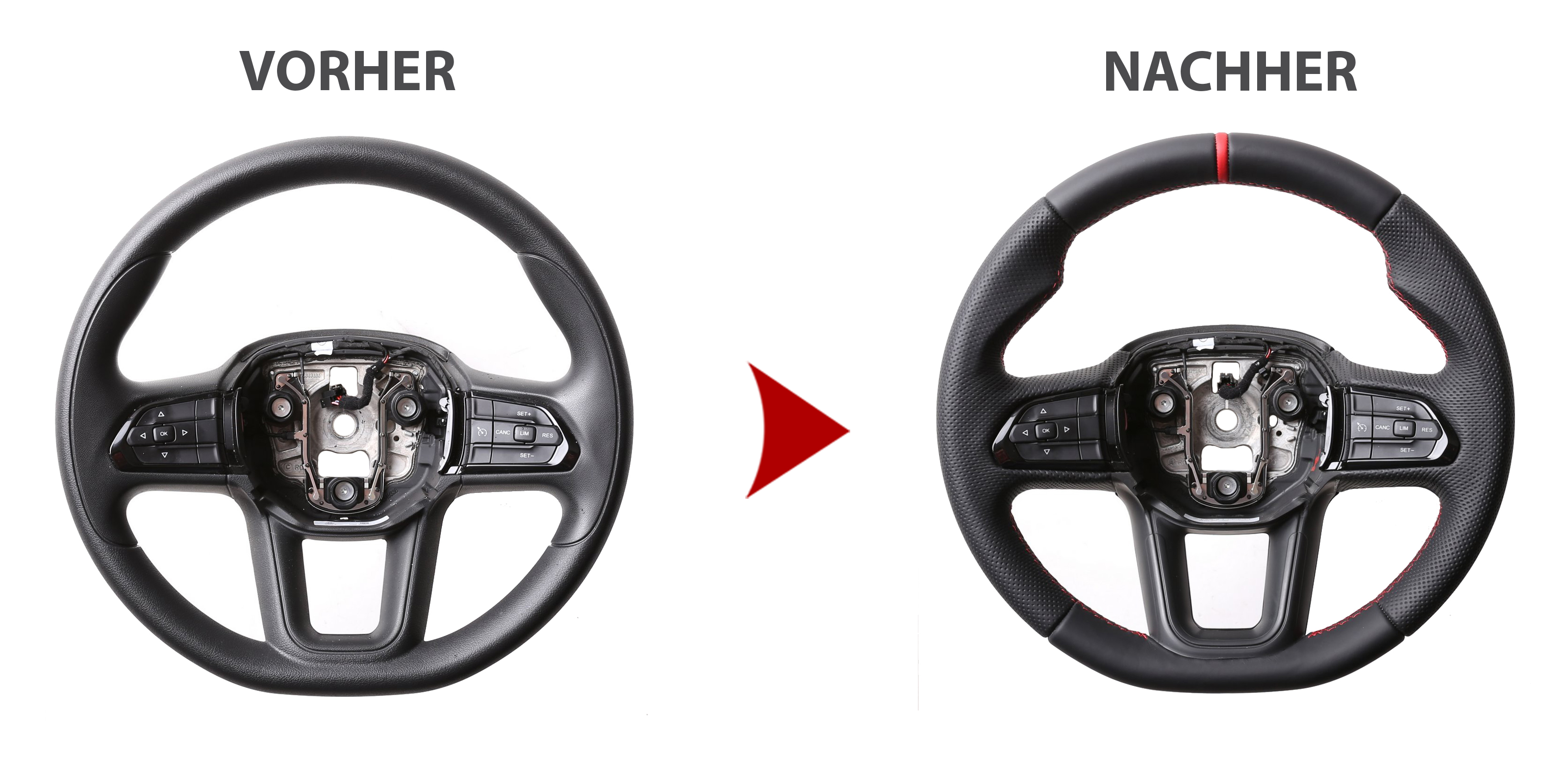 Fiat Lenkrad Ducato 8 Daumenauflagen Kombibezug 12 Uhr Markierung rot Naht rot
