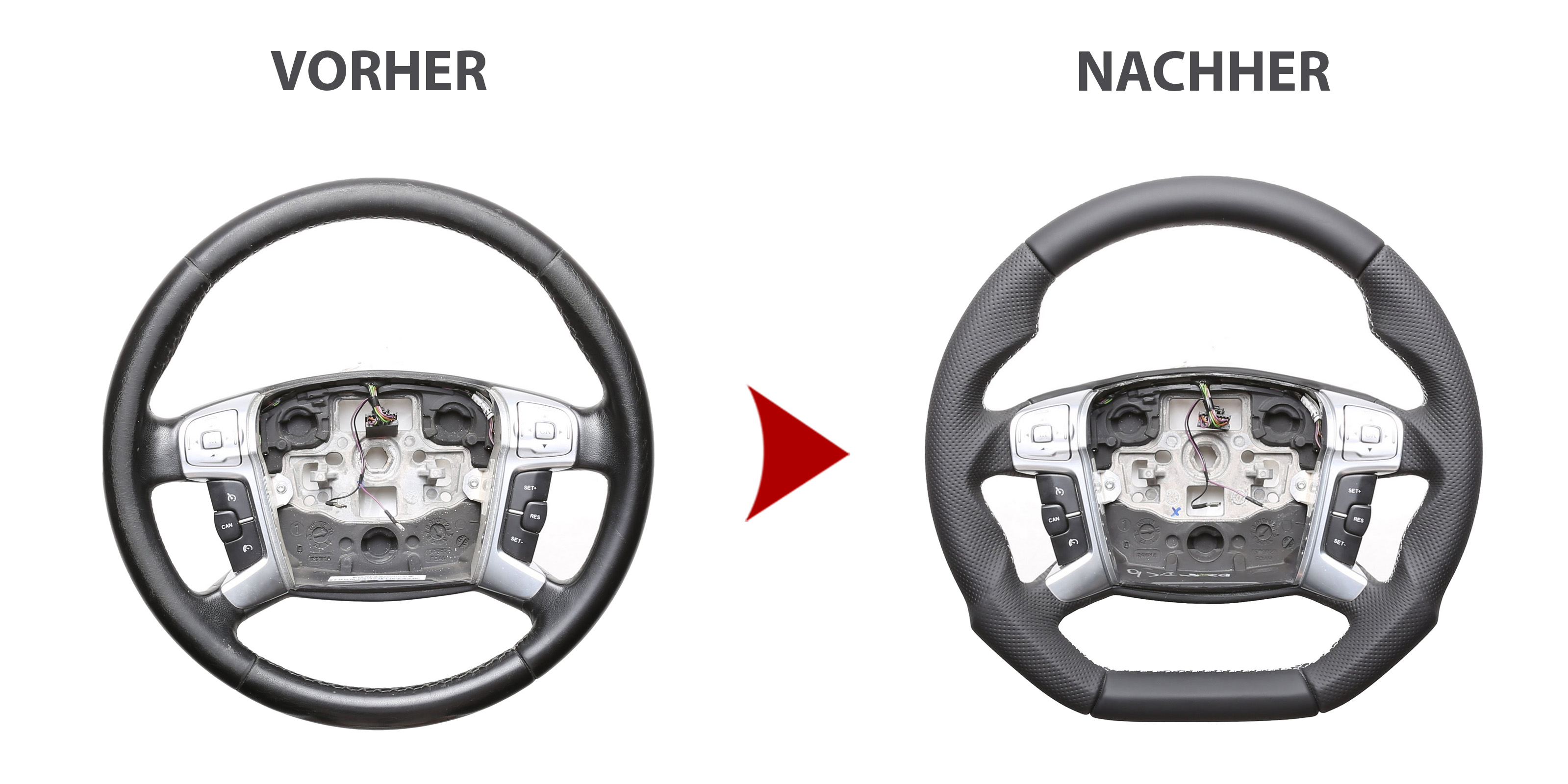 Der Austausch erfolgt ausschließlich gegen ein baugleiches Lenkradmodell. Alle Anbauteile wie Airbag, Multifunktionstasten, Blenden, Schaltwippen oder gar ein Spurhalteassistent übernehmen Sie problemlos von Ihrem Lenkrad. Diese sind nicht im Lieferumfang enthalten.