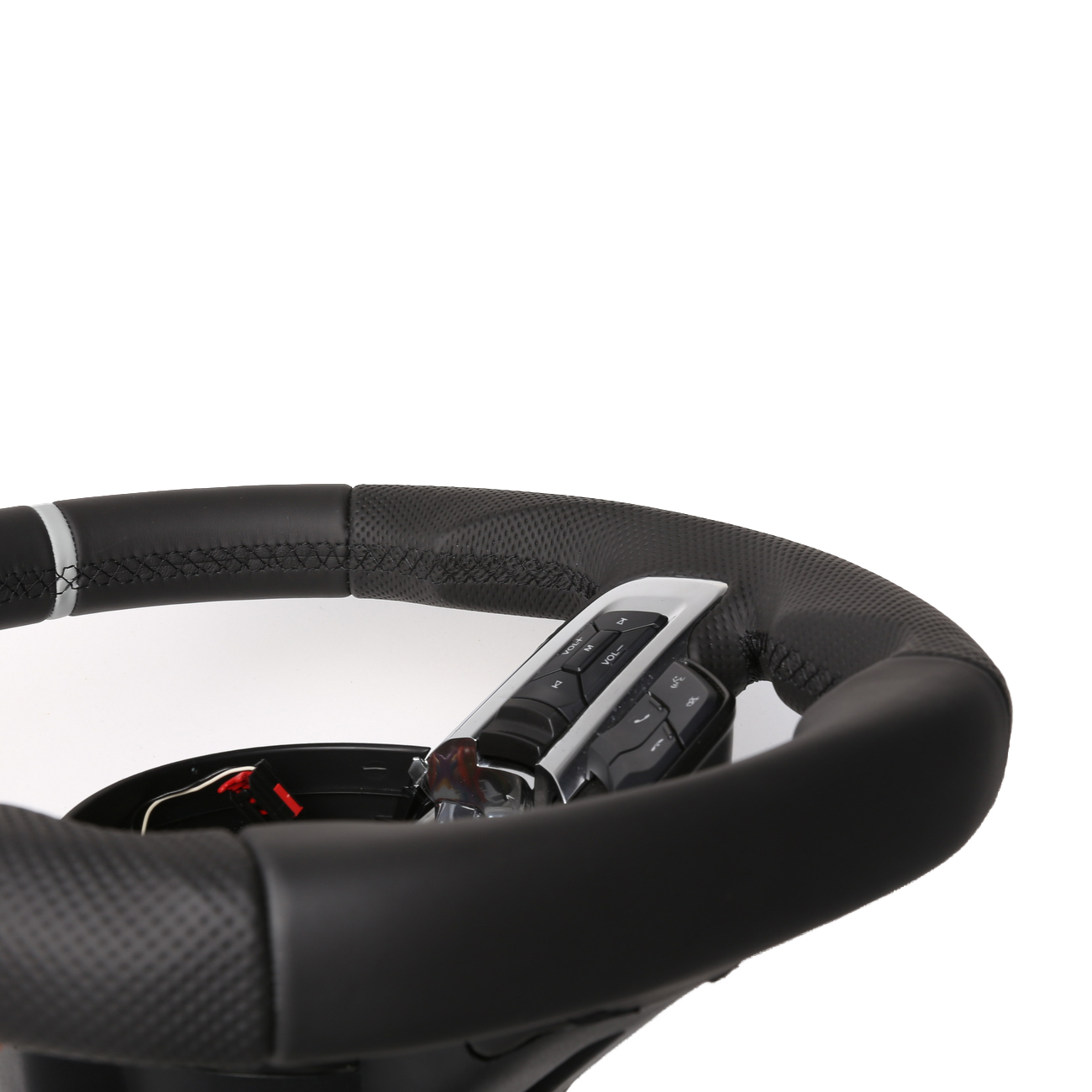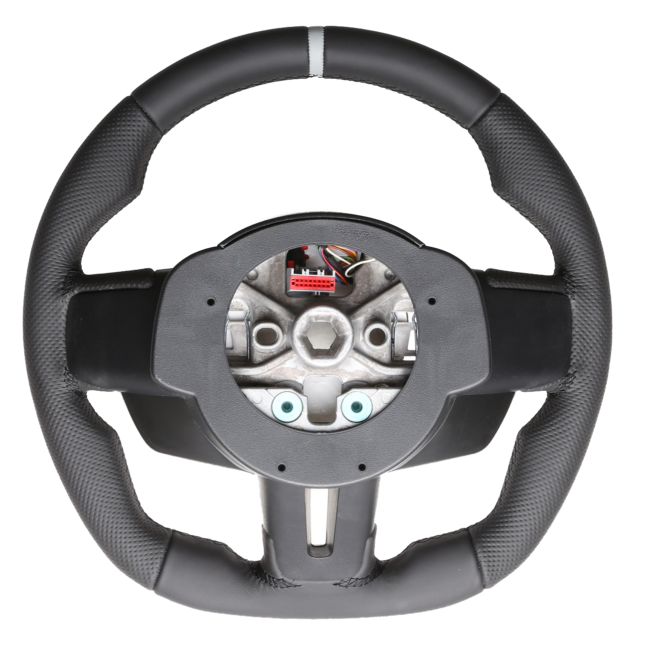 Originalfarbe schwarz, ein Kombibezug aus Nappa und perforiertem Leder, 12 Uhr Markierung grau, Naht schwarz