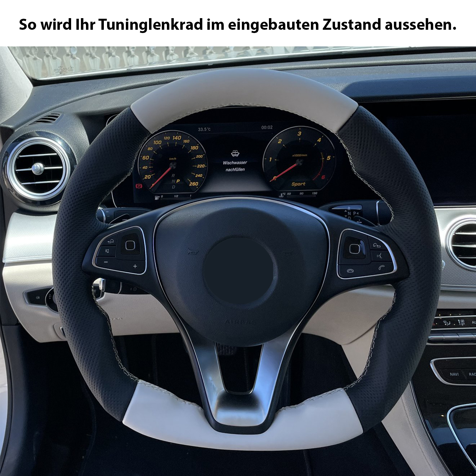 Mercedes Lenkrad A CLA GLC X Klasse W176 W117 X253 470 Abgeflacht NEU Bicolorbezug beige Naht beige
