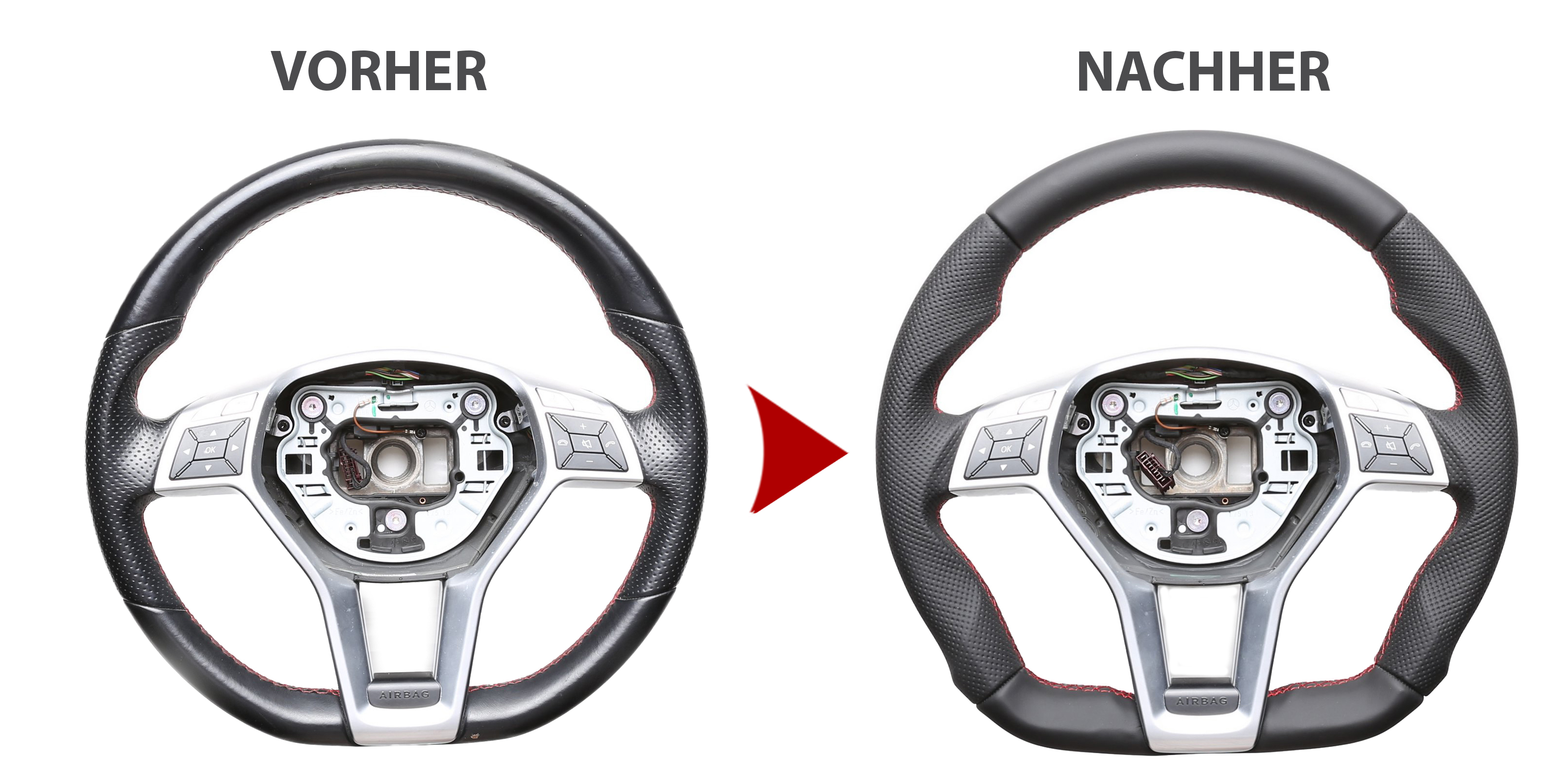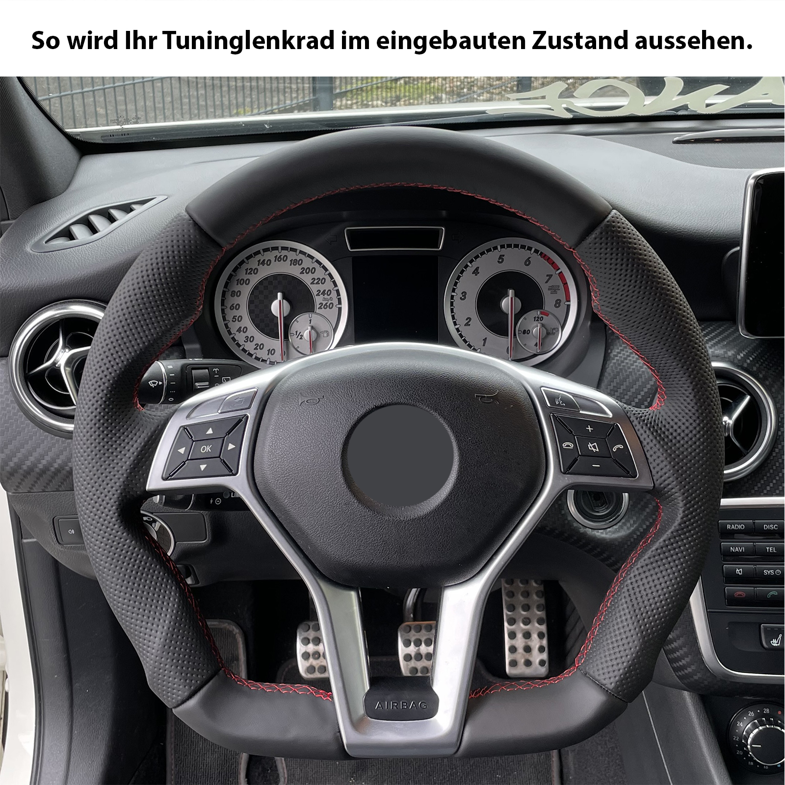 Produktinformationen "Mercedes Lenkrad A CLS GLK Klasse W176 C218 X204 Abgeflacht Kombibezug Naht rot"
