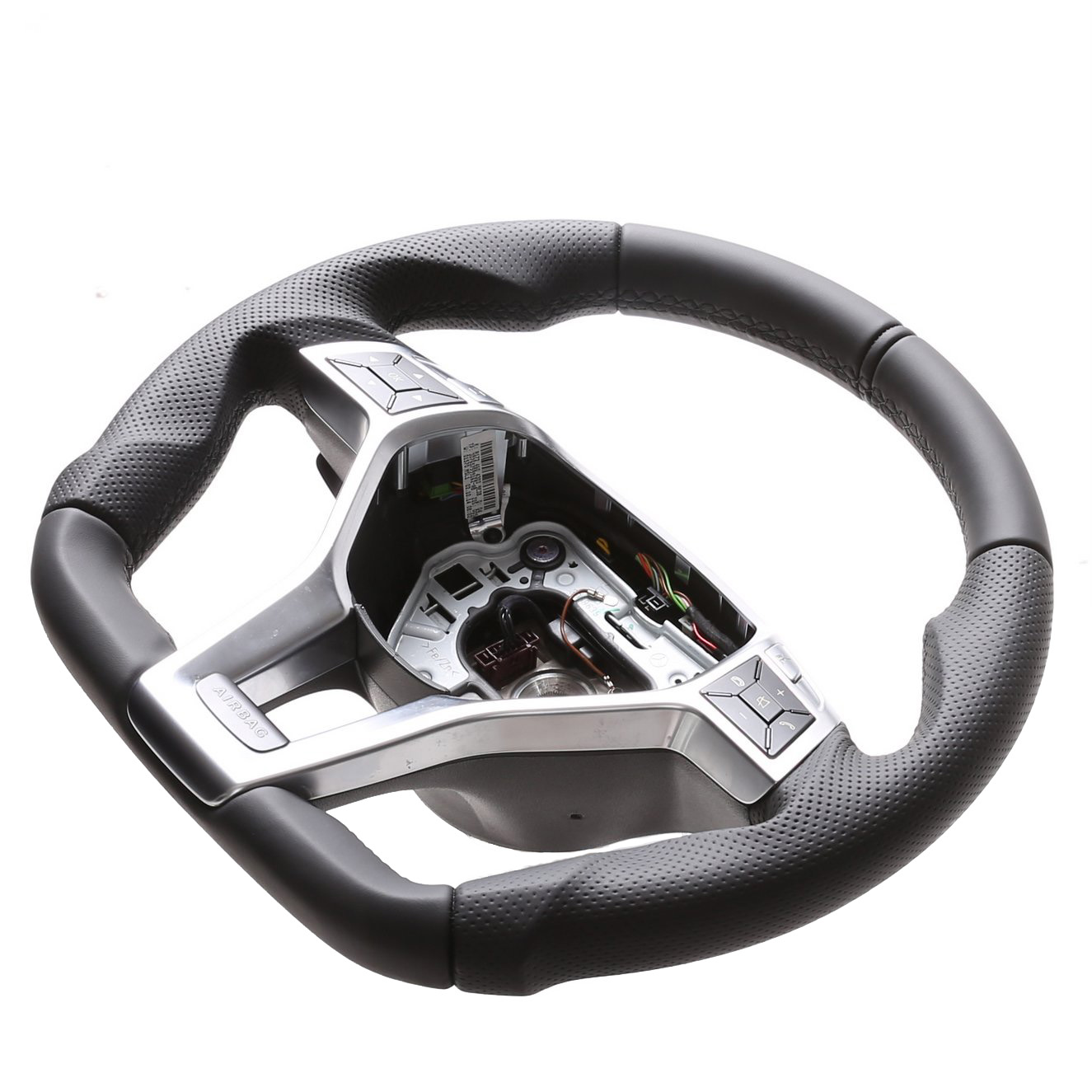Originalfarbe schwarz, ein Kombibezug aus Mercedes Nappa und perforiertem Leder, 12 Uhr Markierung schwarz, Naht schwarz