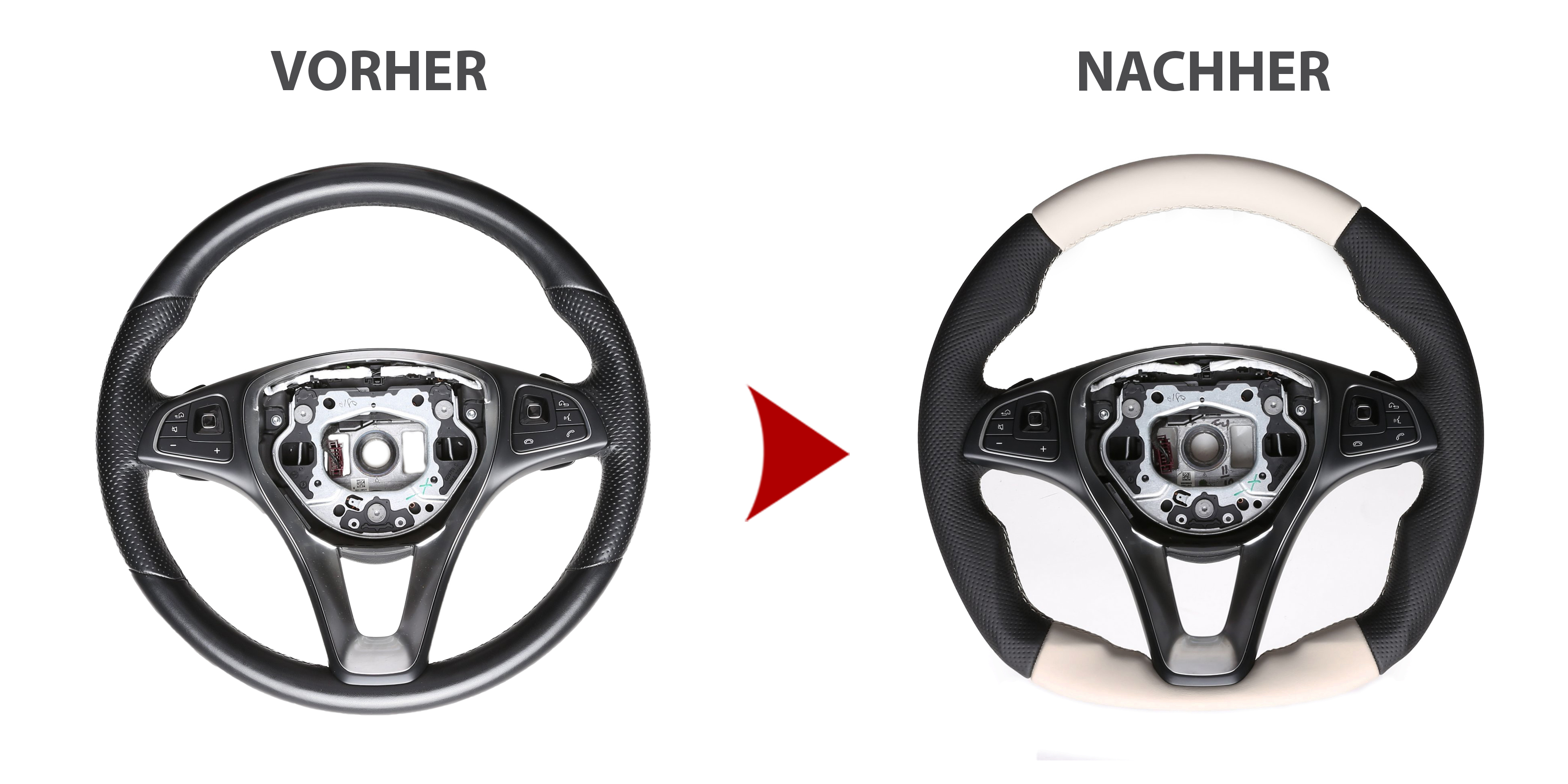 Wir stellen Ihnen aber gerne ein Leihlenkrad zur Verfügung und beziehen Ihr eigenes Lenkrad nach Ihrem Wunsch neu.