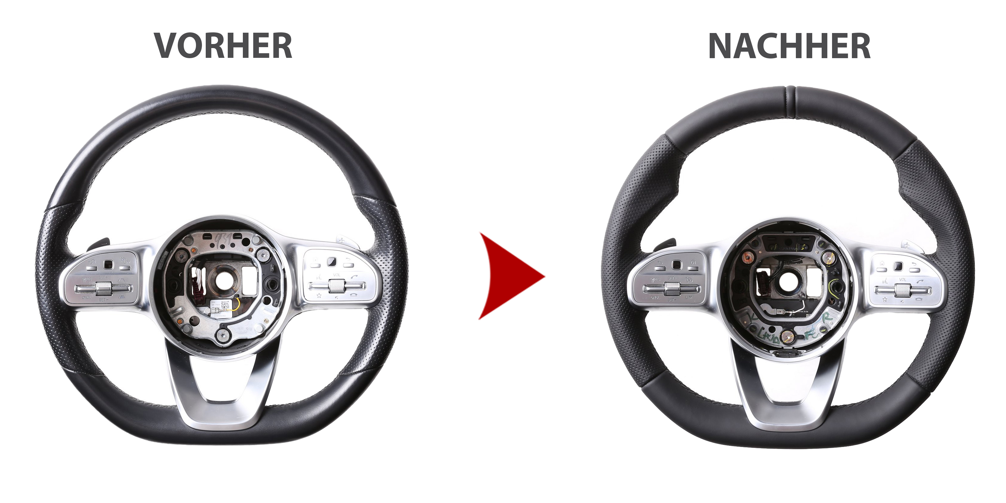 Beachten Sie bitte, dass wir dieses Lenkradmodell nicht im Austauschverfahren und auch nicht in der Leihlenkradvariante anbieten können. Ausschließlich Ihr eigenes Lenkrad kann bei uns neu bezogen werden.