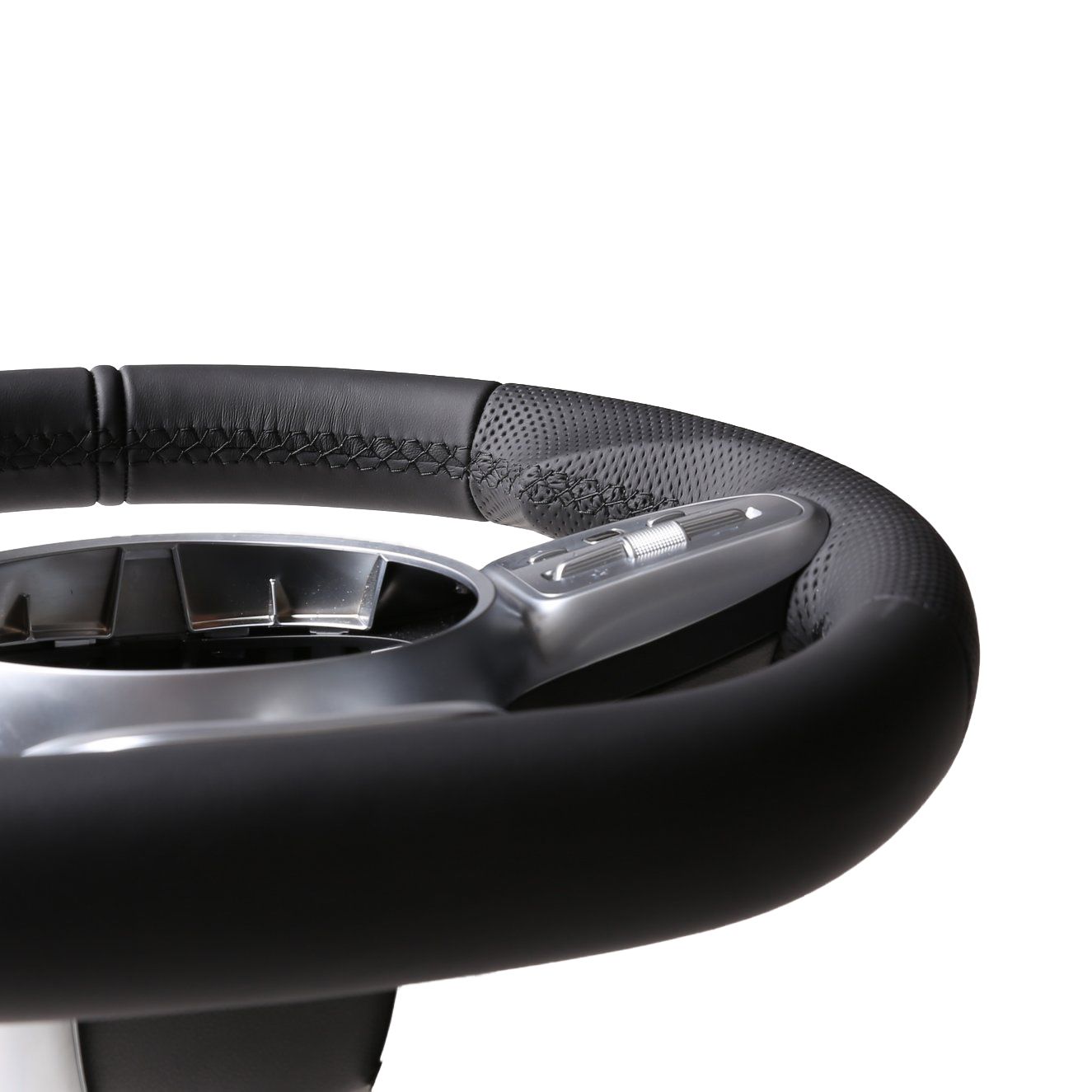 Originalfarbe schwarz, ein Kombibezug aus Mercedes Nappa und perforiertem Leder, 12 Uhr Markierung, Naht schwarz