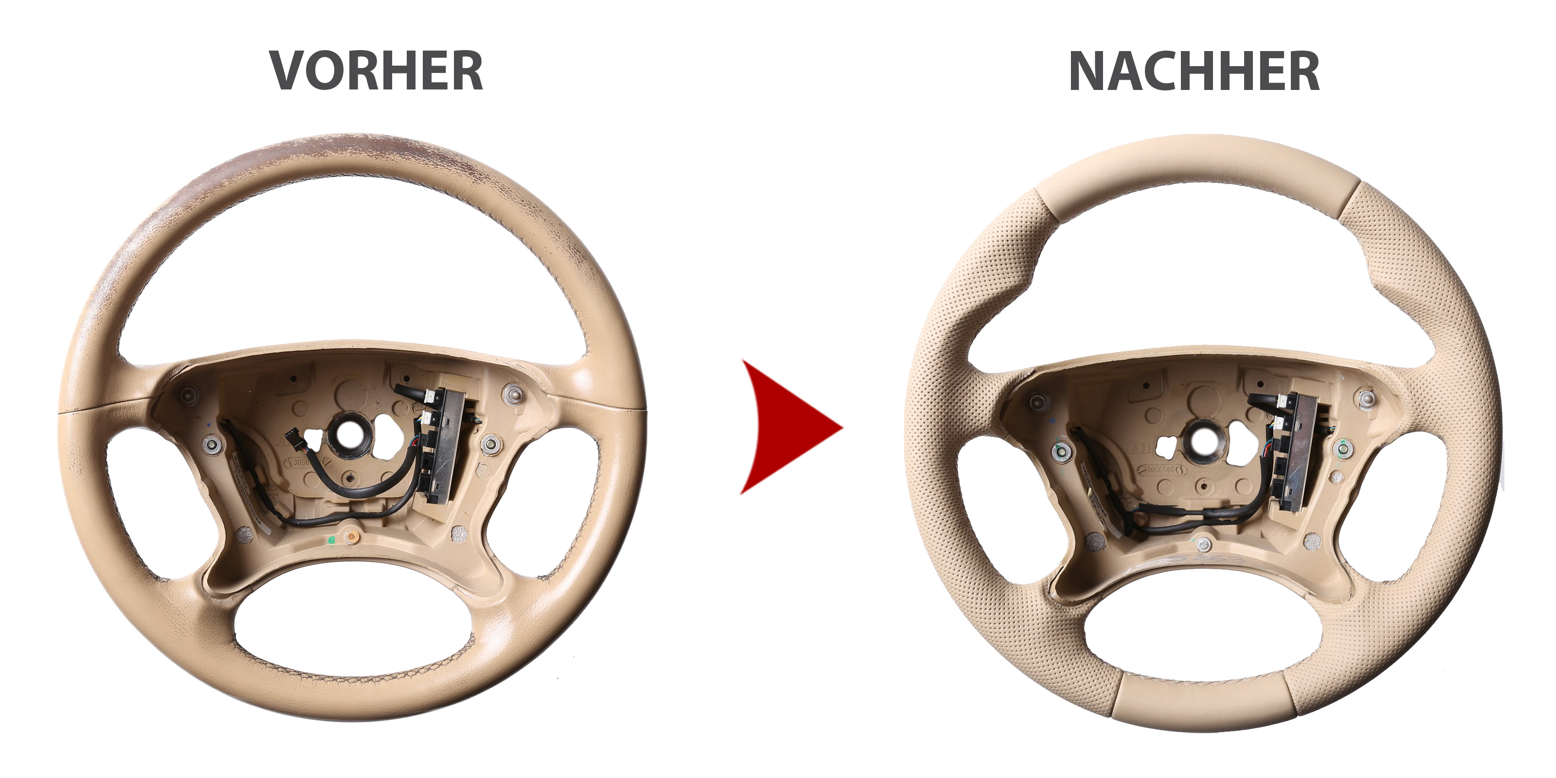 Der Austausch erfolgt ausschließlich gegen ein baugleiches Lenkradmodell. Alle Anbauteile wie Airbag, Multifunktionstasten, Blenden, Schaltwippen oder gar ein Spurhalteassistent übernehmen Sie problemlos von Ihrem Lenkrad. Diese sind nicht im Lieferumfang enthalten.