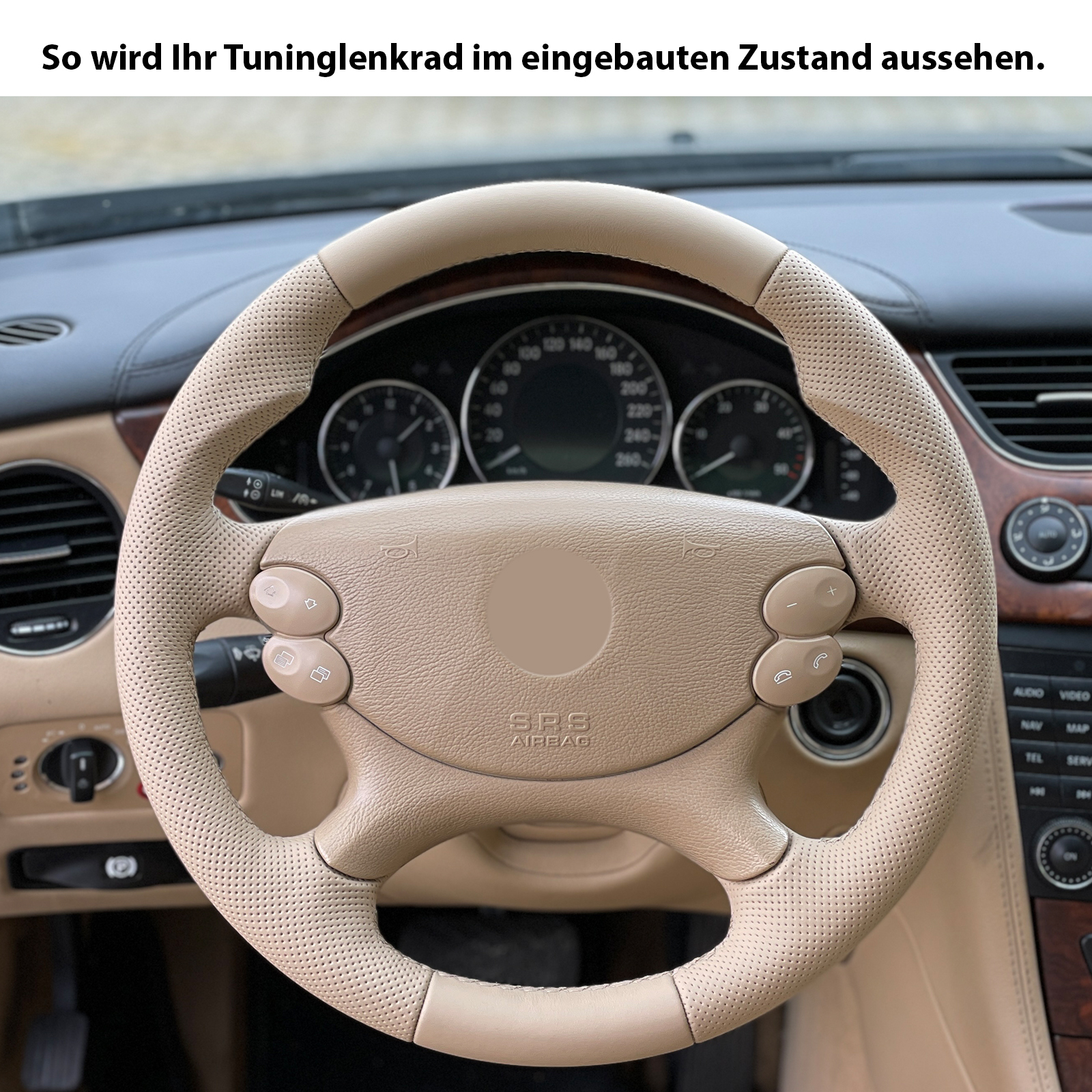 Produktinformationen "Mercedes Lenkrad R230 W209 W211 E Klasse CLK SL beige Daumenauflagen Kombibezug Naht beige"