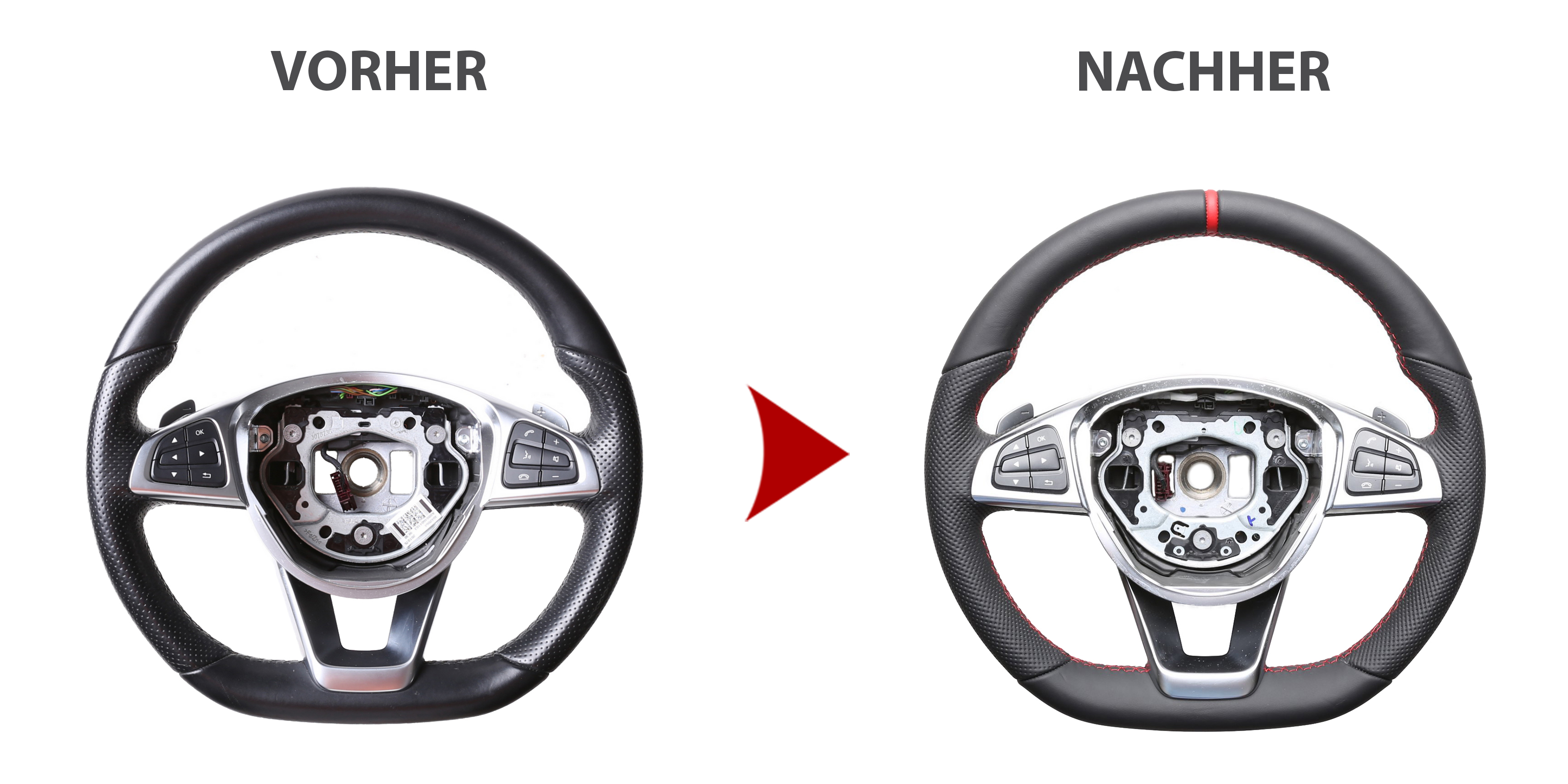 Produktinformationen "Mercedes Lenkrad B CLS GLC SLK Klasse W246 C218 X253 R172 Kombibezug 12 Uhr Markierung rot Naht rot"
