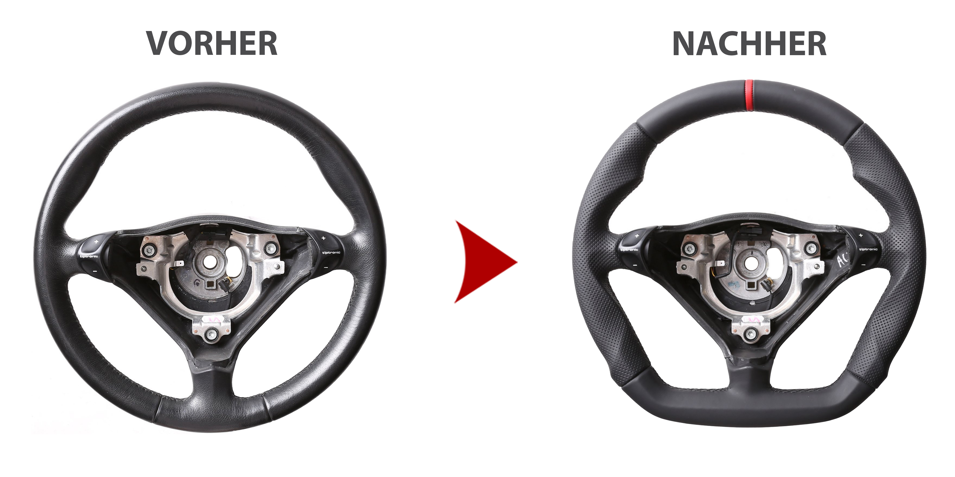Porsche Lenkrad 911 993 996 986 Boxster Sport Abgeflacht Kombibezug 12 Uhr rot Naht schwarz