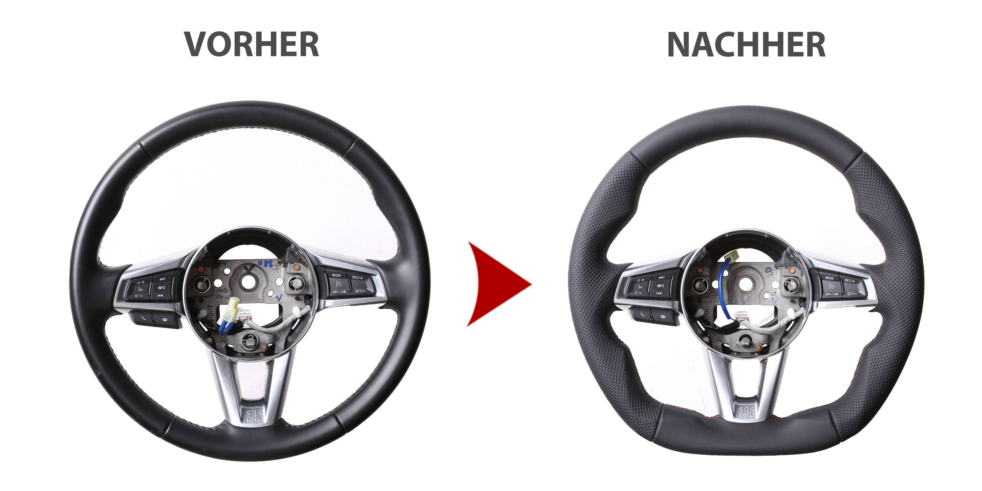 Produktinformationen "Mazda Lenkrad MX 5 Abgeflacht NEU Kombibezug Naht dunkelrot"