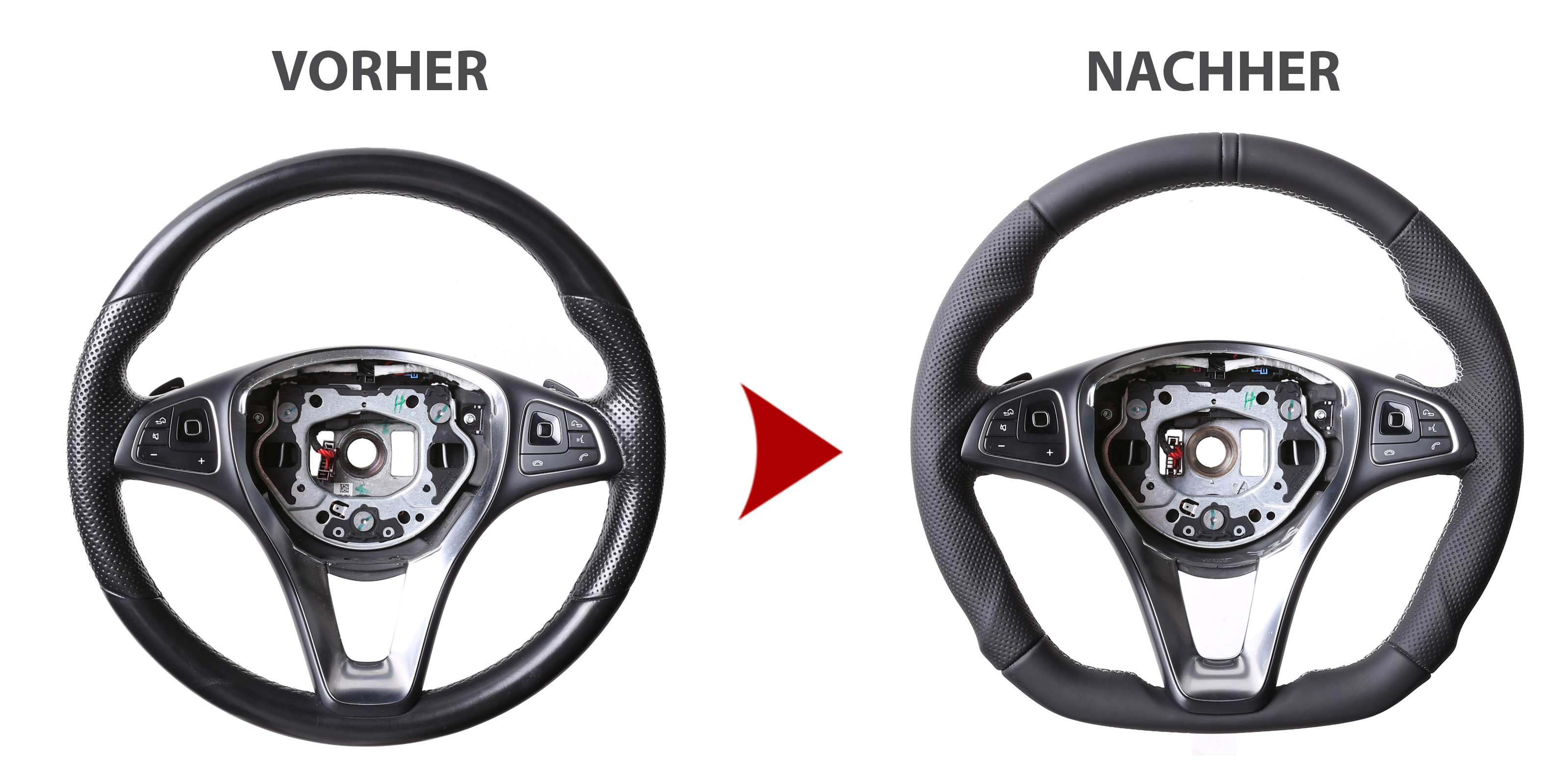Der Austausch erfolgt ausschließlich gegen ein baugleiches Lenkradmodell. Alle Anbauteile wie Airbag, Multifunktionstasten, Blenden, Schaltwippen oder gar ein Spurhalteassistent übernehmen Sie problemlos von Ihrem Lenkrad. Diese sind nicht im Lieferumfang enthalten.