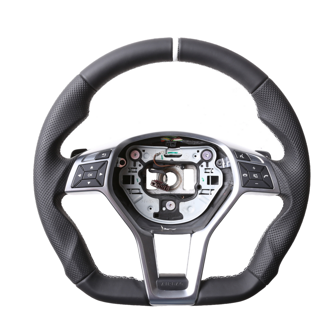 Produktinformationen "Mercedes Lenkrad A CLS GLK Klasse W176 C218 X204 Abgeflacht Kombibezug 12 Uhr Markierung Naht silber"
