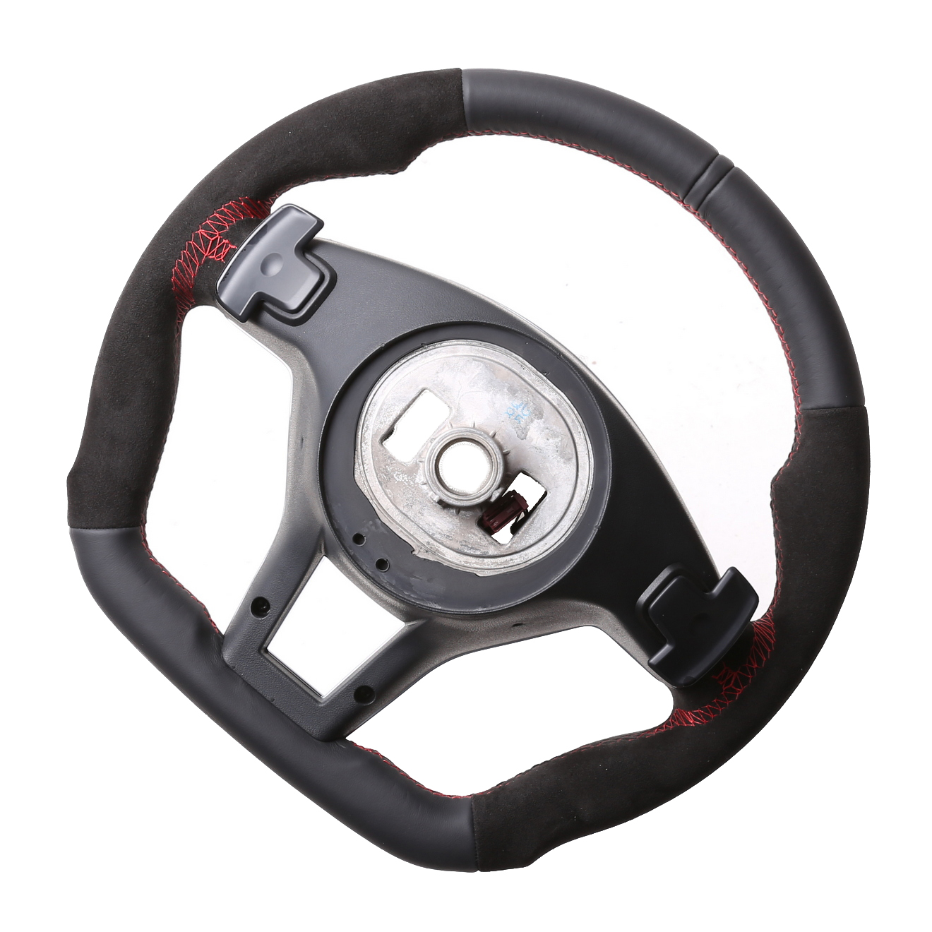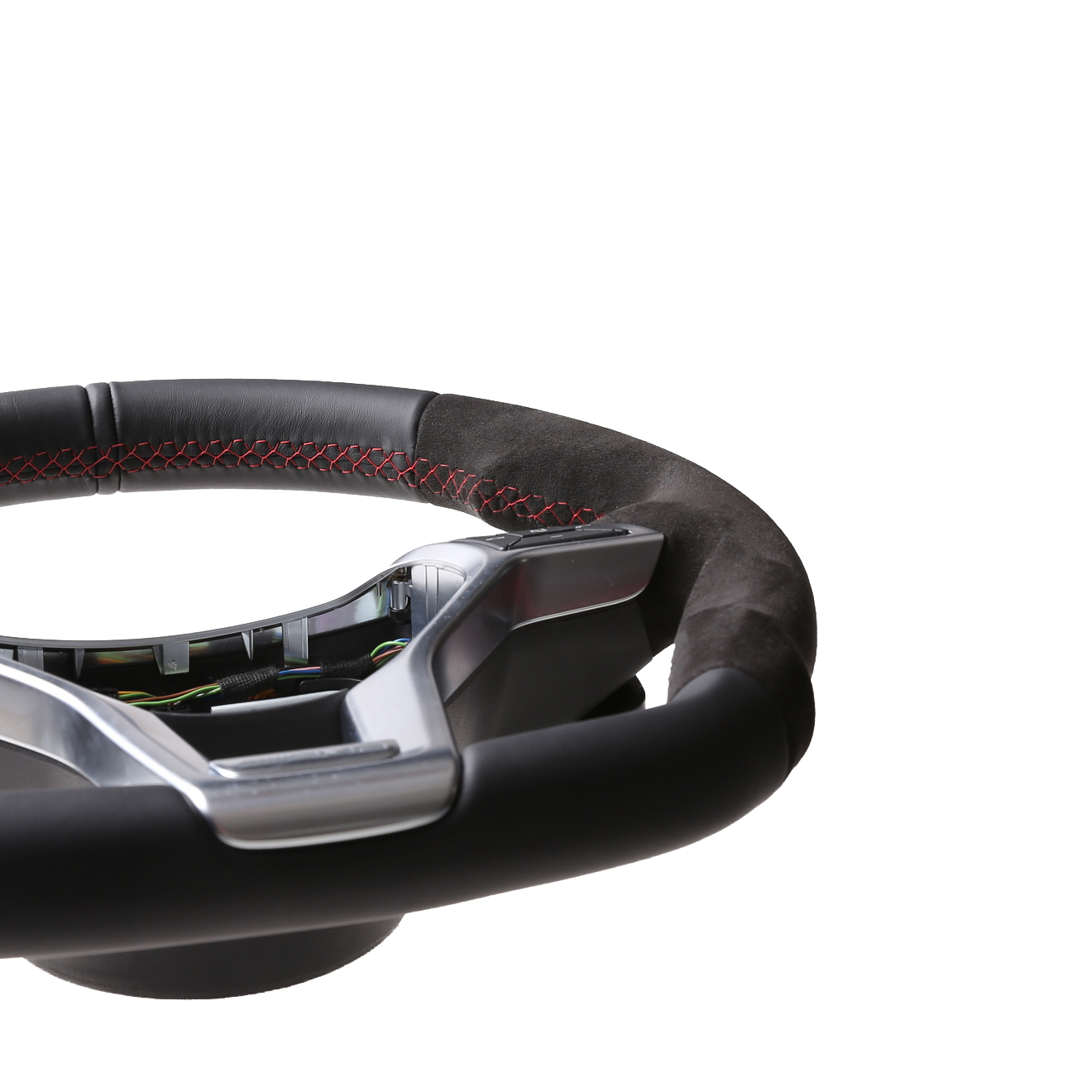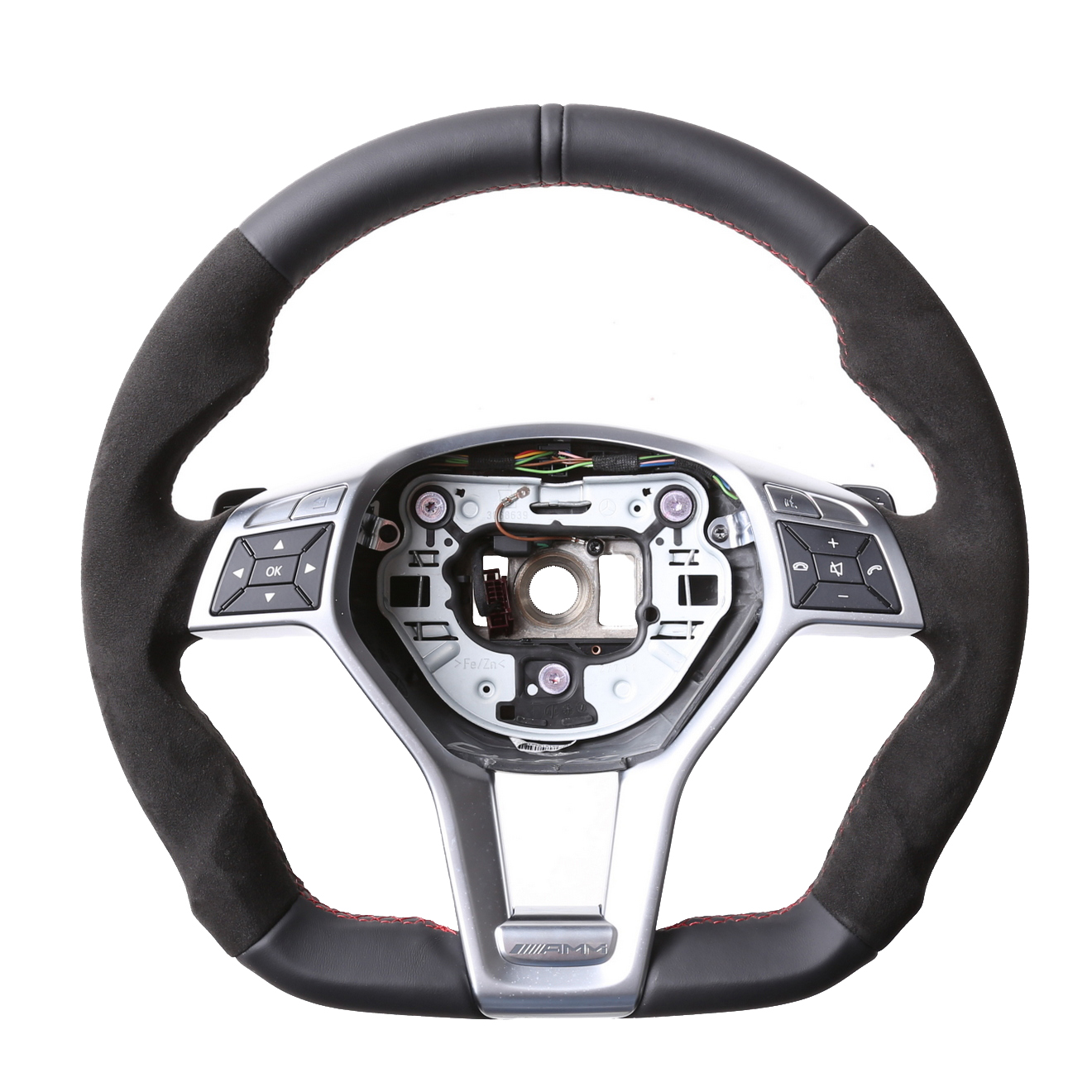 Originalfarbe schwarz, ein Kombibezug aus Mercedes Nappa und Alcantara Leder, 12 Uhr Markierung, Naht rot.