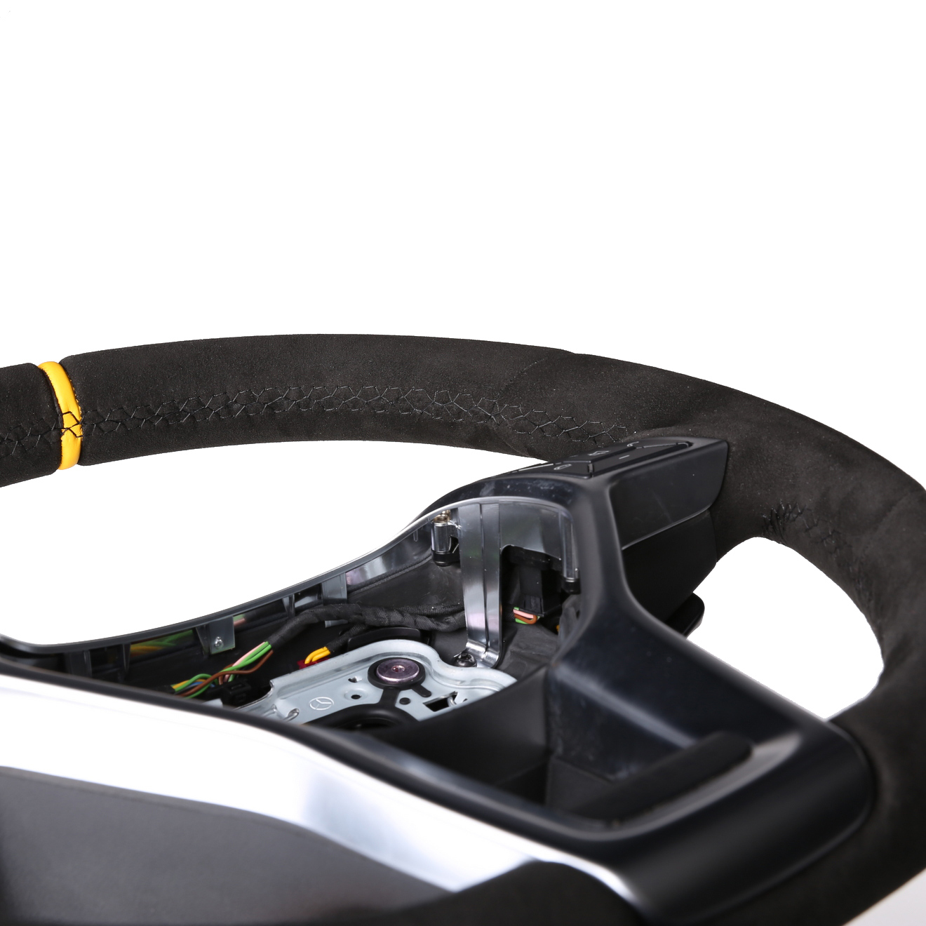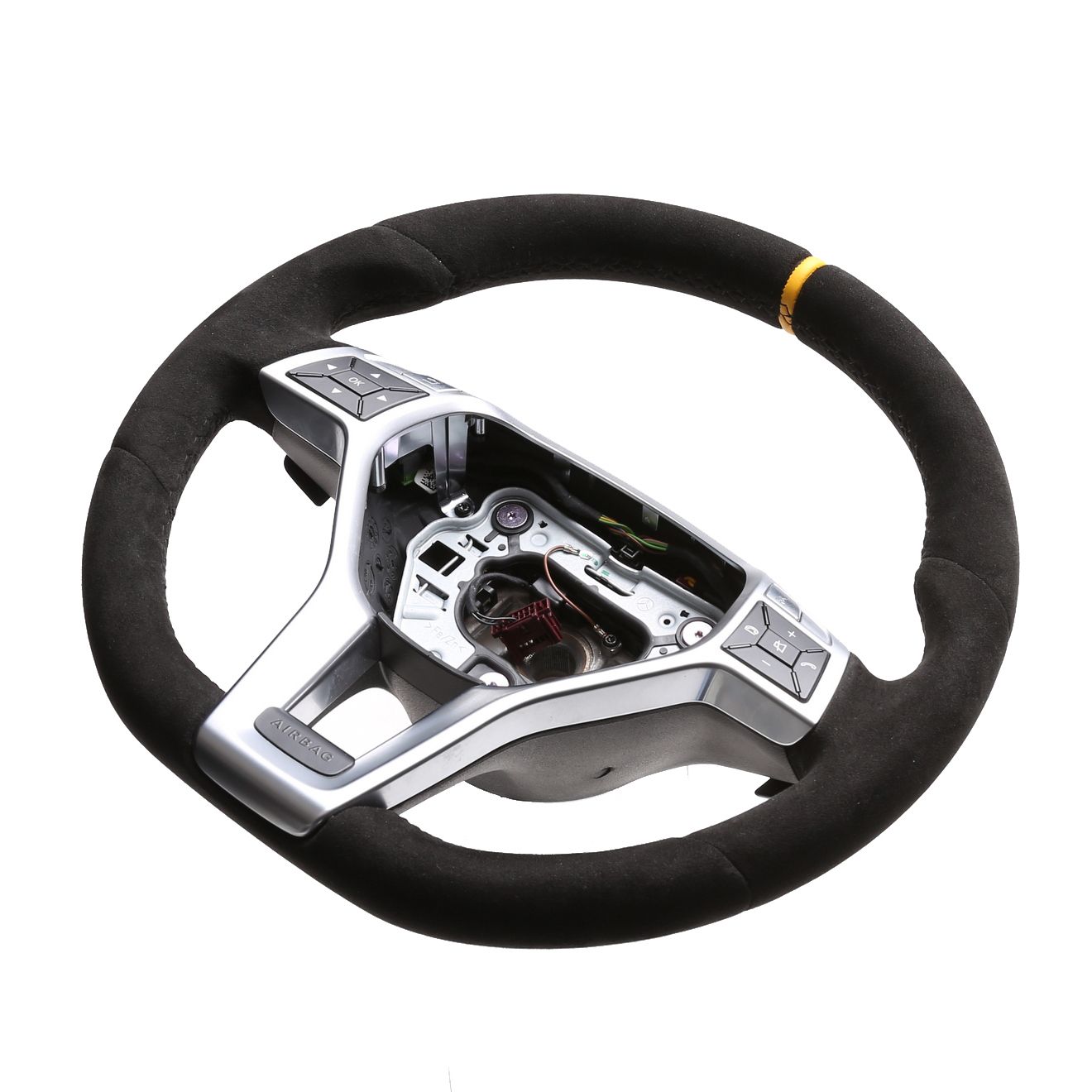 Produktinformationen "Mercedes Lenkrad A CLS GLK Klasse W176 C218 X204 Alcantara 12 Uhr Markierung gelb Naht schwarz"