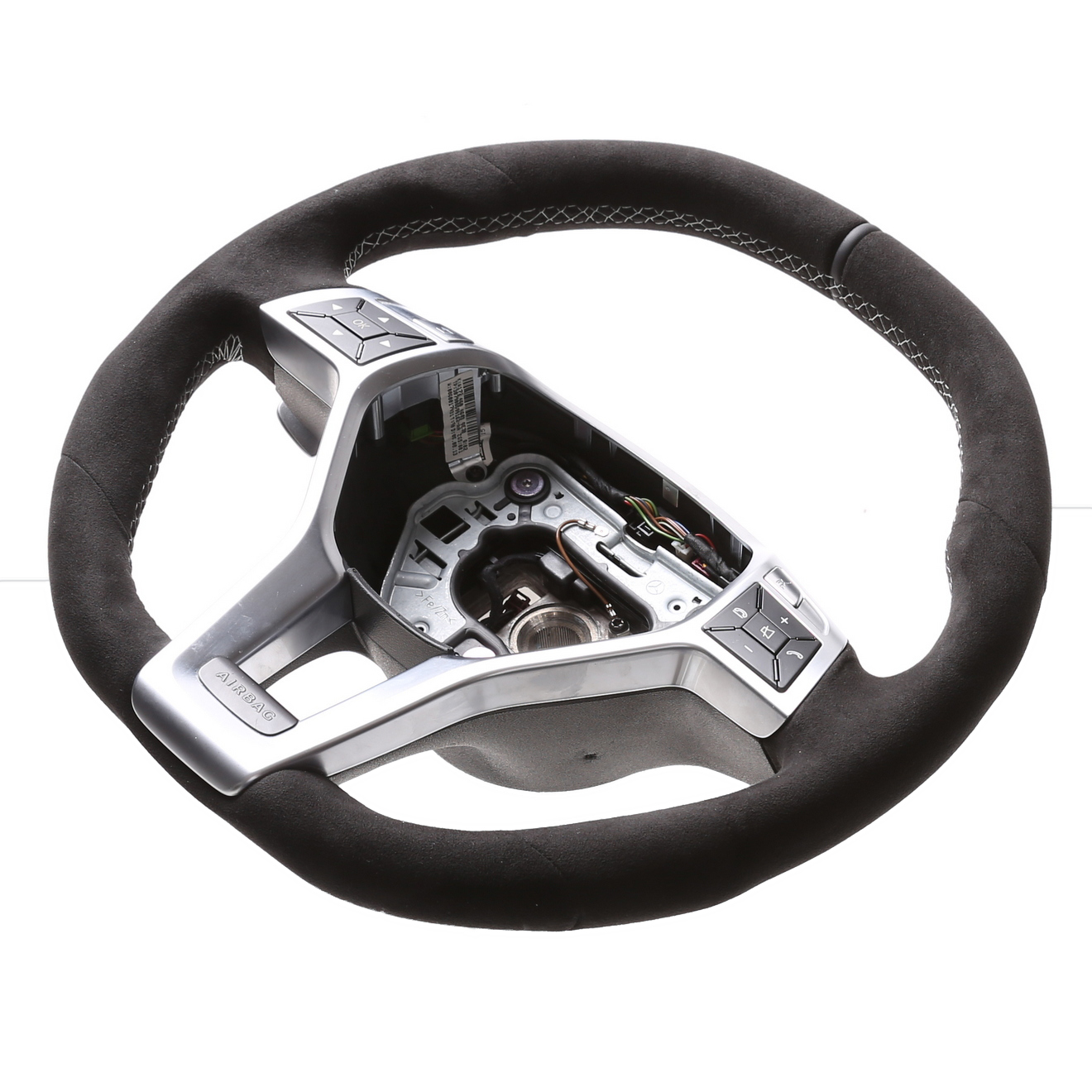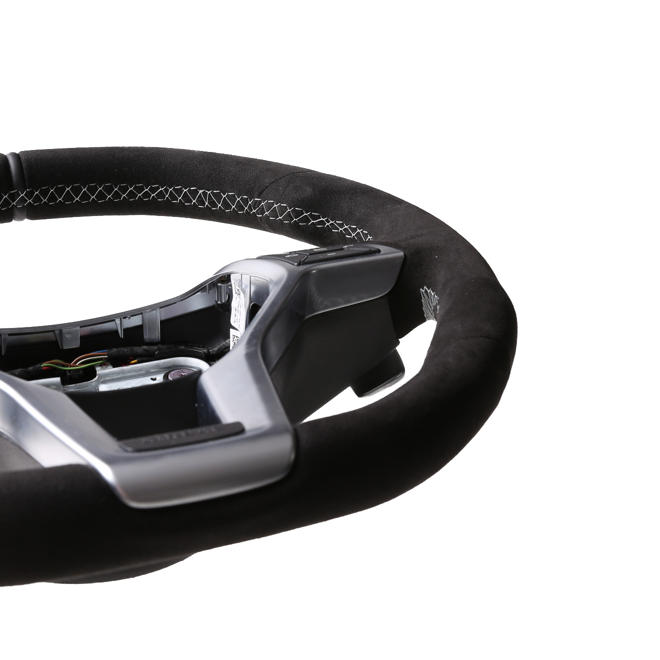 Originalfarbe schwarz, ein Bezug aus Alcantara Leder, 12 Uhr Markierung, Naht silber