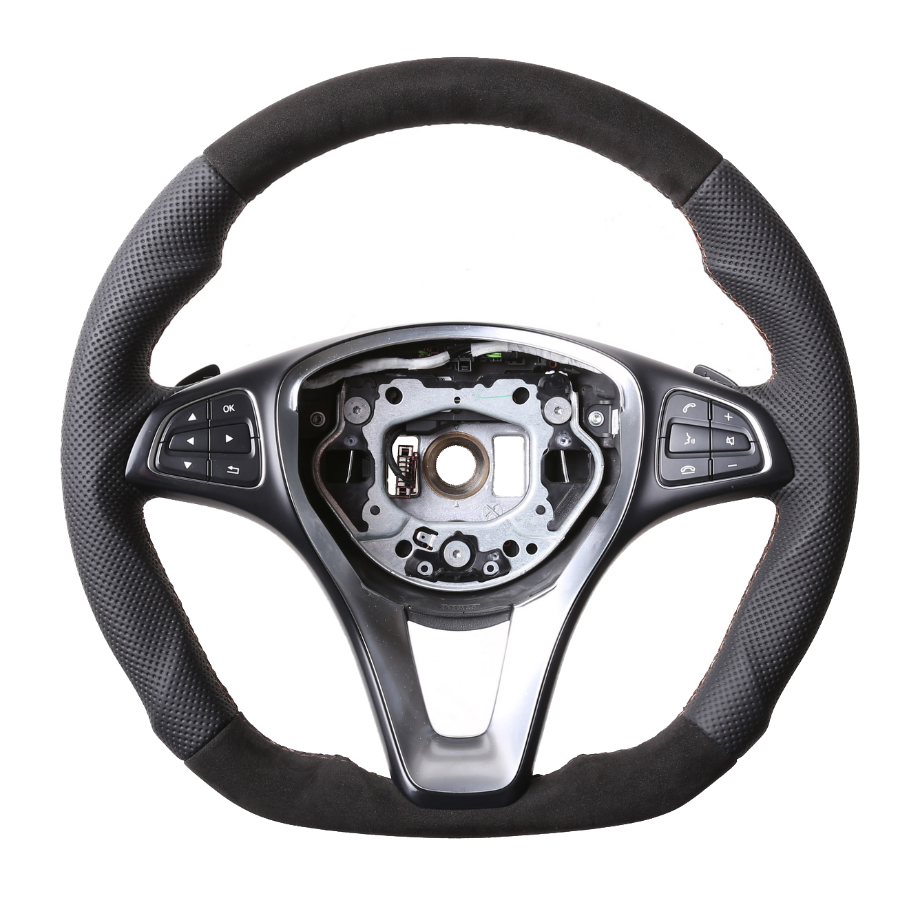 Produktinformationen "Mercedes Lenkrad C E GLA GL W205 W213 X156 X166 Abgeflacht Kombibezug Alcantara Naht braun"